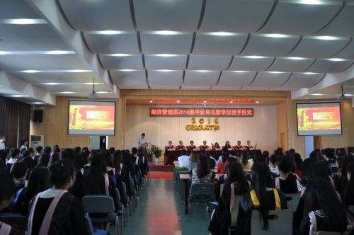 本届毕业典礼与以往不同,既是学院领导第一次出席的系部毕业典礼,又是经济管理系本科专业和财务管理辅修二学位毕业生第一次共同参加的毕业典礼。大经管2016届毕业生将铭记“刚健创新、和而不同”的校训,传承“经世致用、管财悟道”的系训,