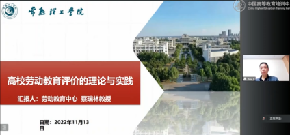 2022年11月12日—13日,由中国高等教育学会指导,中国高等教育学会劳动教育专业委员会和中国高等教育培训中心联合主办,高等教育出版社协办的新时代高校劳动教育体系建设与实施专题培训班(第二期)暨首届高校劳动教育课程教学高端研讨会成功举办。来自全国各地高校的劳动教育分管领导、劳动教育主管部门负责人、劳动教育课程负责人、劳动教育课程授课教师、劳动教育专兼职辅导员等近800人线上参加了会议。