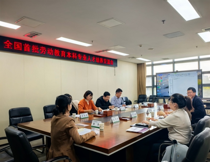 2025年11月12日下午,全国首批劳动教育本科专业人才培养交流会在中国劳动关系学院和教育部学生服务与素质发展中心召开。教育部学生服务与素质发展中心副主任方伟、德育与劳动教育处处长左唳鹤,中国劳动关系学院劳动教育学院党总支书记邹玉薇、院长曲霞、副院长党印和纪雯雯、学术委员会主任班建武,天津职业技术师范大学职业教育学院党委书记薛刚,党委副书记、副院长、纪委书记赵庆全,副院长李文静,综合办公室主任侯玄,学工办主任、团委书记矫海燕等参加会议。