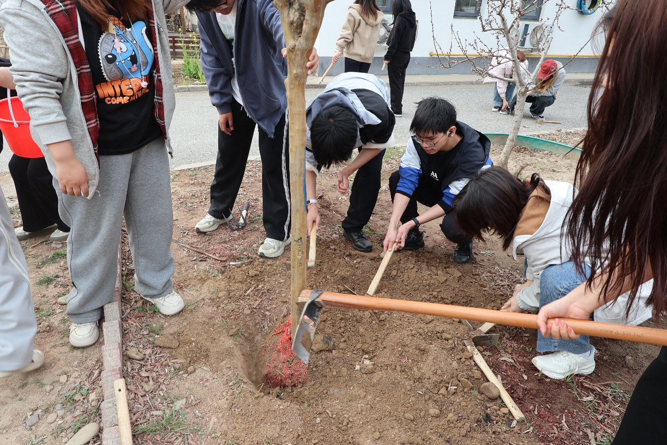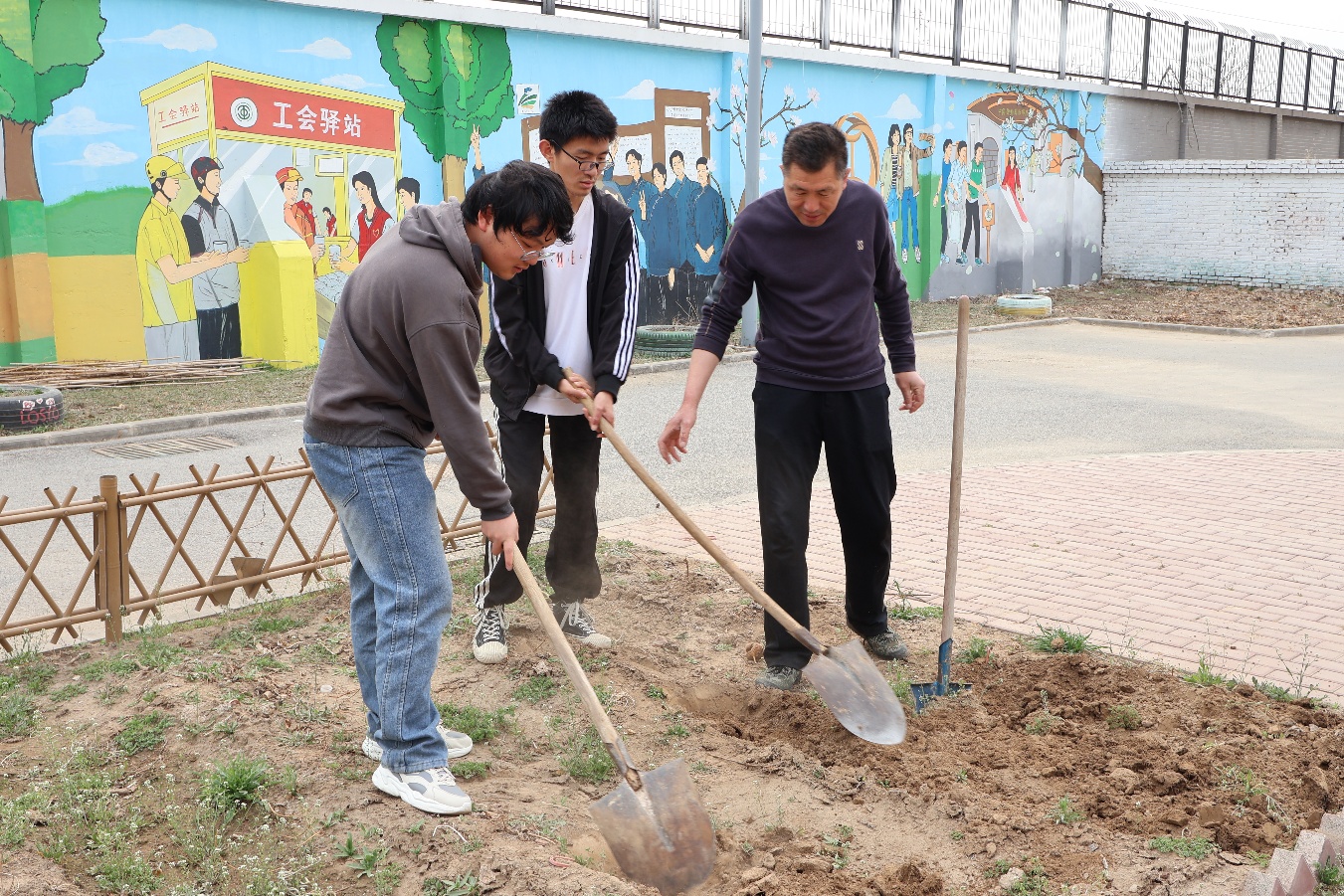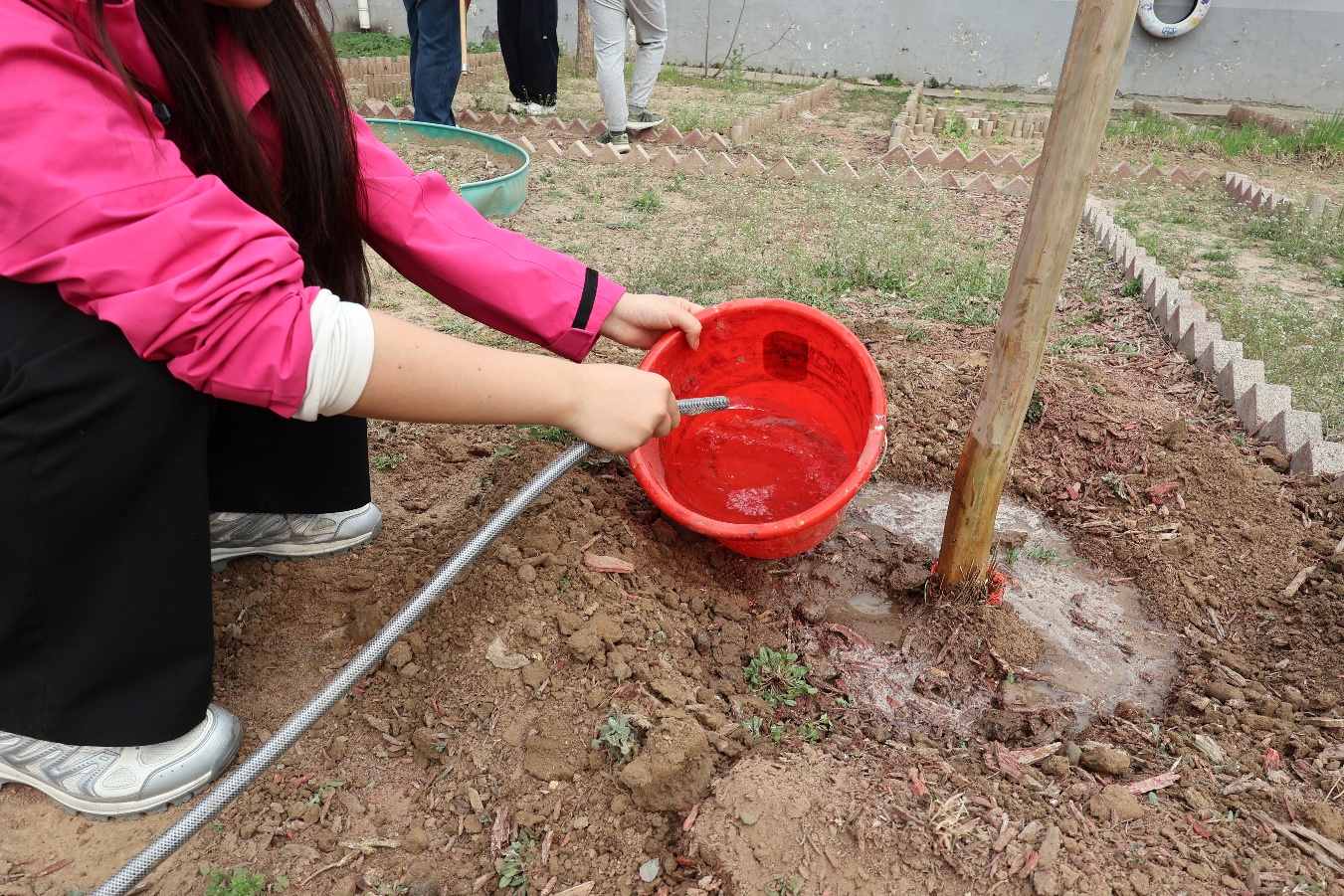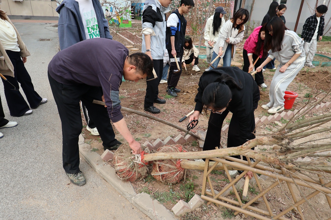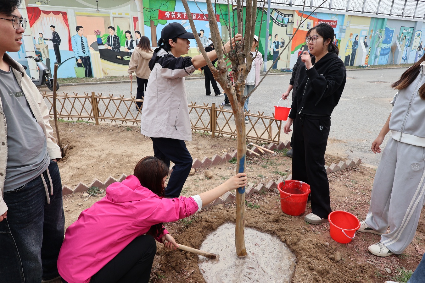 活动伊始,“班树凝心·共筑未来——同植一班树”环节在耕读小院展开。同学们热情高涨,共同参与了挖坑、栽种、培土与浇水等植树环节。在劳动中,大家不仅以亲手种下的班级树见证青春成长,寄托对班集体发展的美好期许,还增进了彼此情谊,以实际行动践行绿色理念,切身感受劳动之美。