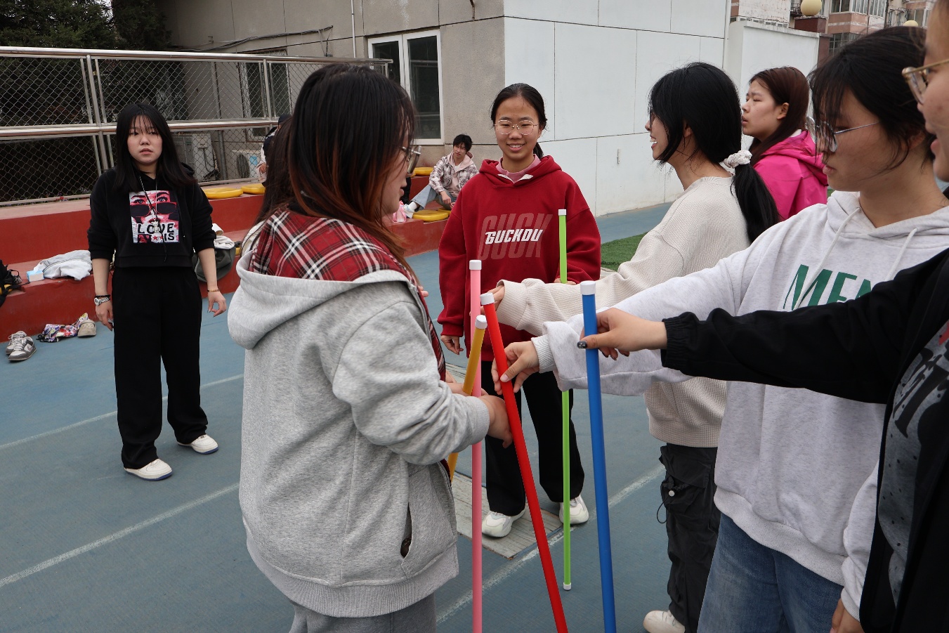 随后,“沐春而行·健体励志——趣味运动会”在体育场火热开赛。活动设置了踢毽子、不倒森林、抓拍全家福等三项趣味比拼项目。比赛以小组的形式展开,在欢声笑语中,各参赛同学使出浑身解数争取胜利。经过激烈而友好的角逐,最终依据整体积分排名收获了相应奖品。