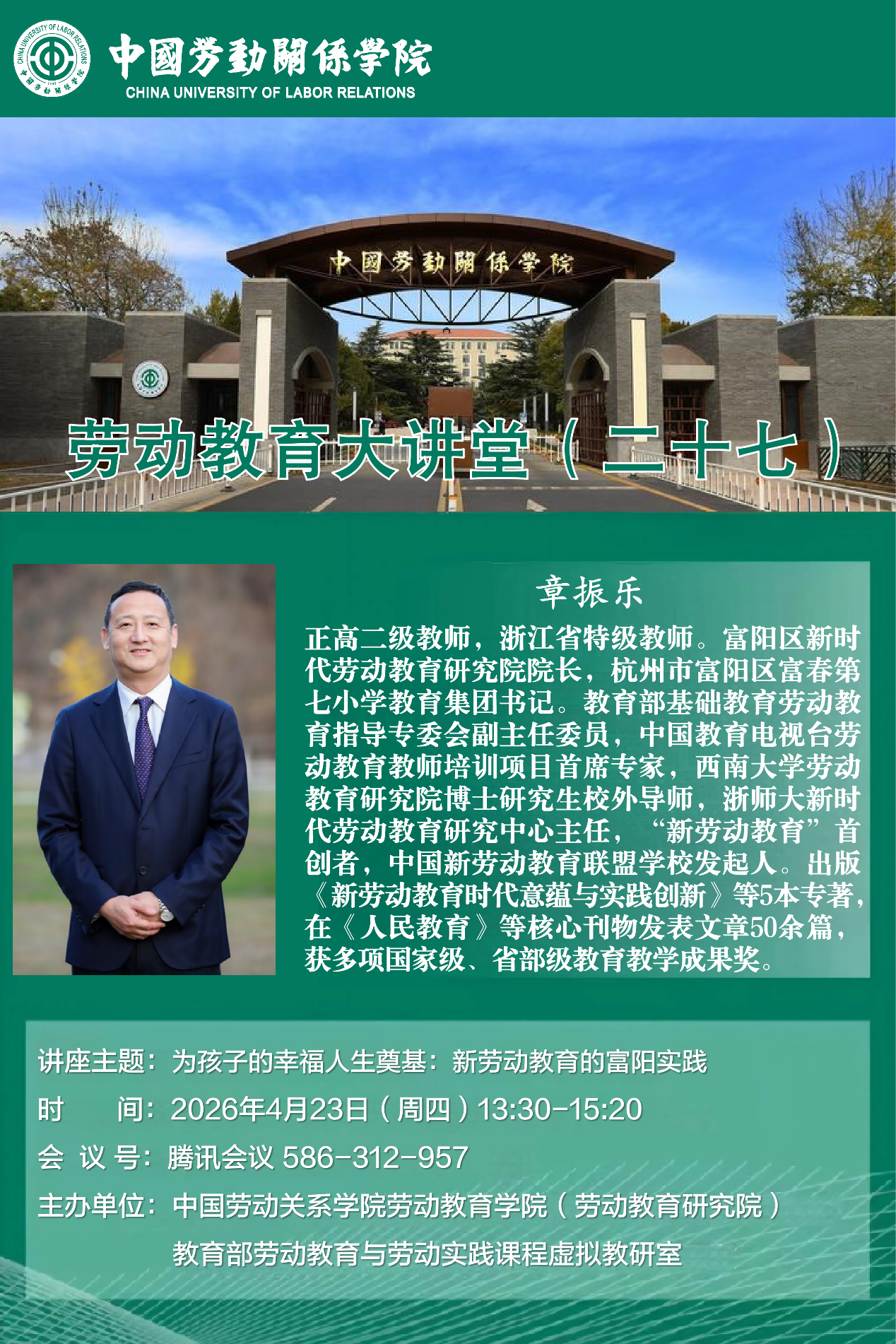 为高质量办好劳动教育本科专业,中国劳动关系学院劳动教育学院于2026学年春季学期开设了《劳动教育实务》系列讲座,邀请各地各校优秀的劳动教育实践团队与学生面对面交流,全面深化学生对劳动教育工作实践的感知和理解。