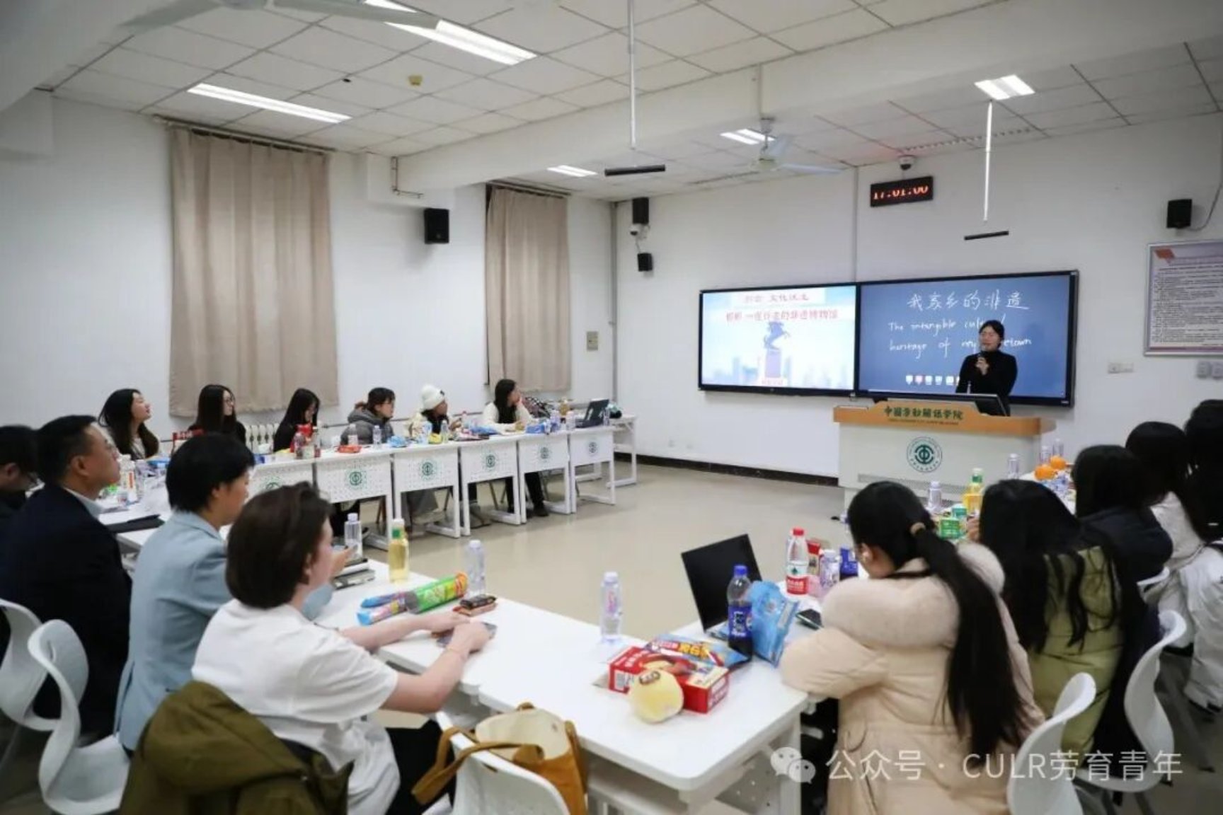 为弘扬中华优秀传统文化,深化《中国非遗与实践》课程实践教学,促进中外文化交流互鉴,12月9日下午,中国劳动关系学院非物质文化遗产教育研究中心在闻道楼111教室成功举办 “非遗茶话会”。校党委常委、副校长李珂出席活动并讲话,国际交流处、教务处、劳动教育学院、财务处等部门负责领导参与座谈,北京市政协委员、非物质文化遗产何氏通络开结术代表性传承人何银萍女士作为特邀嘉宾出席活动,《中国非遗与实践》课程班全体15名学生参与此次活动。活动由非遗教育研究中心统筹开展。
