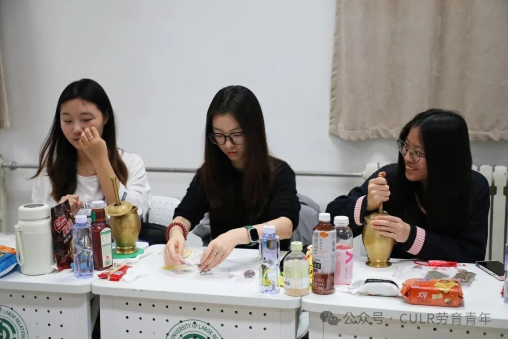 作为活动重点环节,何银萍女士带领中外学子开展非遗防流感香包制作体验。以非遗传统预防疾病的理念为基础,何银萍女士指导学子们进行香包配料等环节,大家在老师的示范引领下,有条不紊地完成捣药、填充等步骤,认真投入每一个环节。活动结束后,每位学子都收获了专属的防流感香包,在实践中直观感受非遗文化的实用价值与独特魅力。