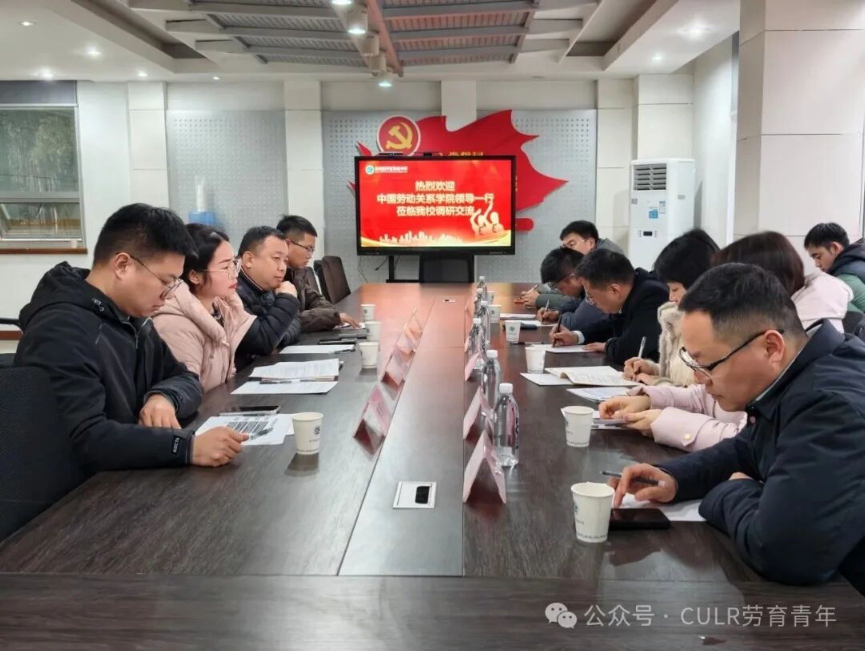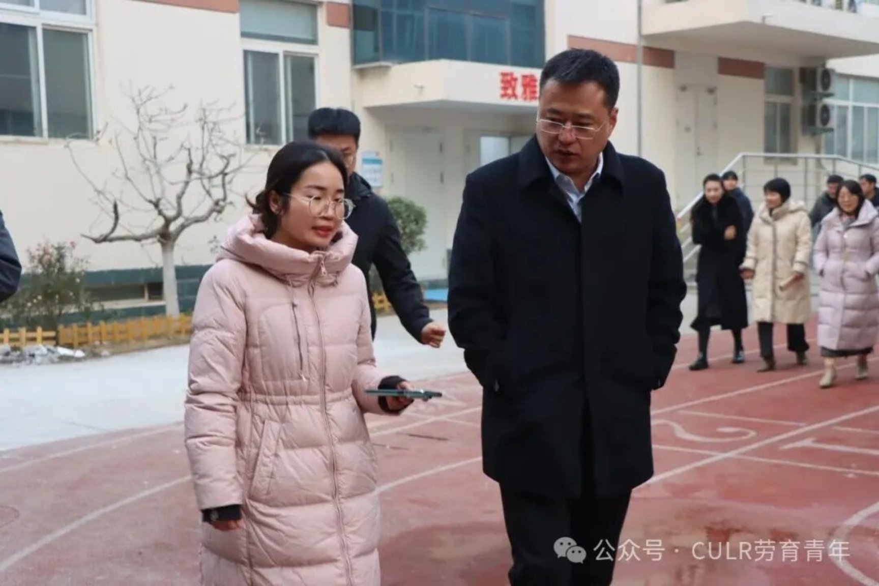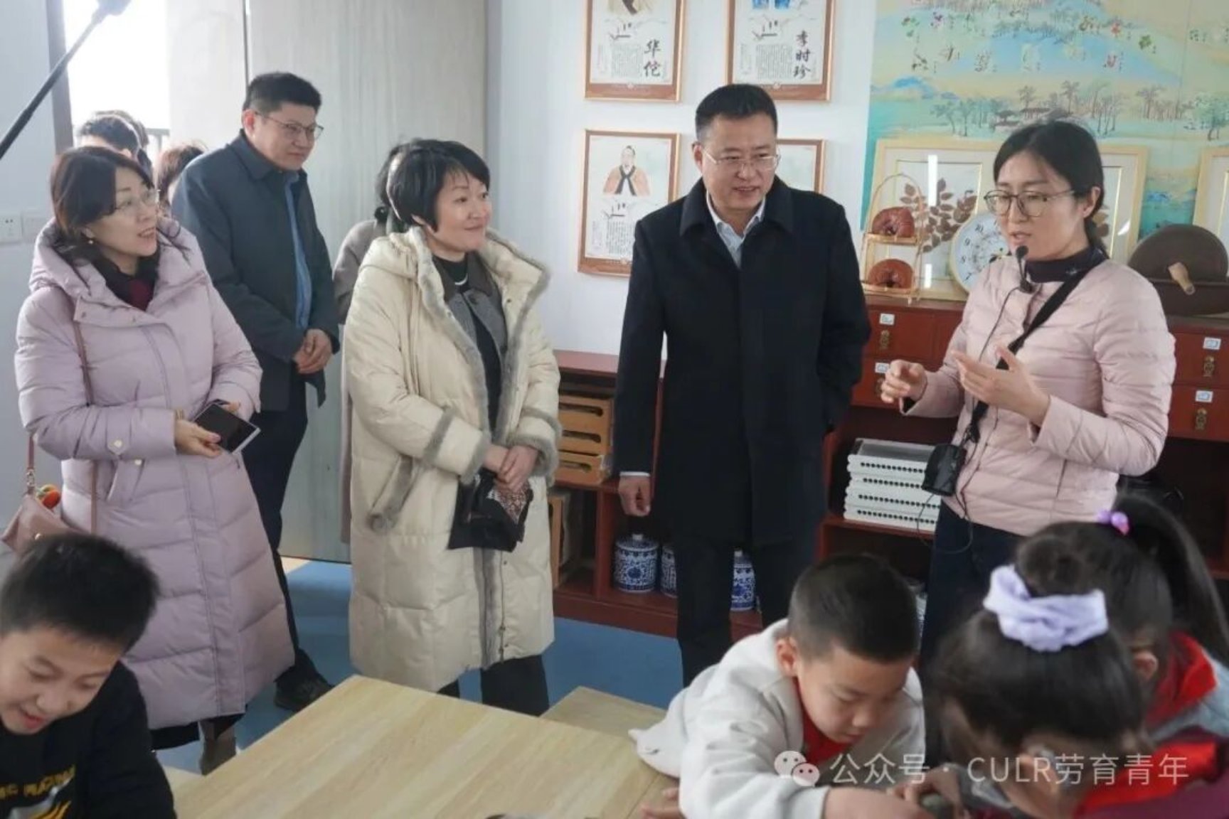 在致远中学,调研团队听取了学校的办学理念介绍及劳动教育专业教师用人需求。