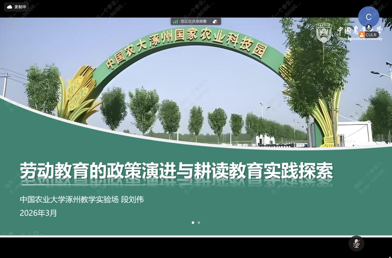 本次论坛邀请到民中国农业大学涿州教学实验场场长,中国人民政治协商会议河北省第十三届委员段刘伟,主讲“劳动教育的政策演进与耕读教育实践探索”。