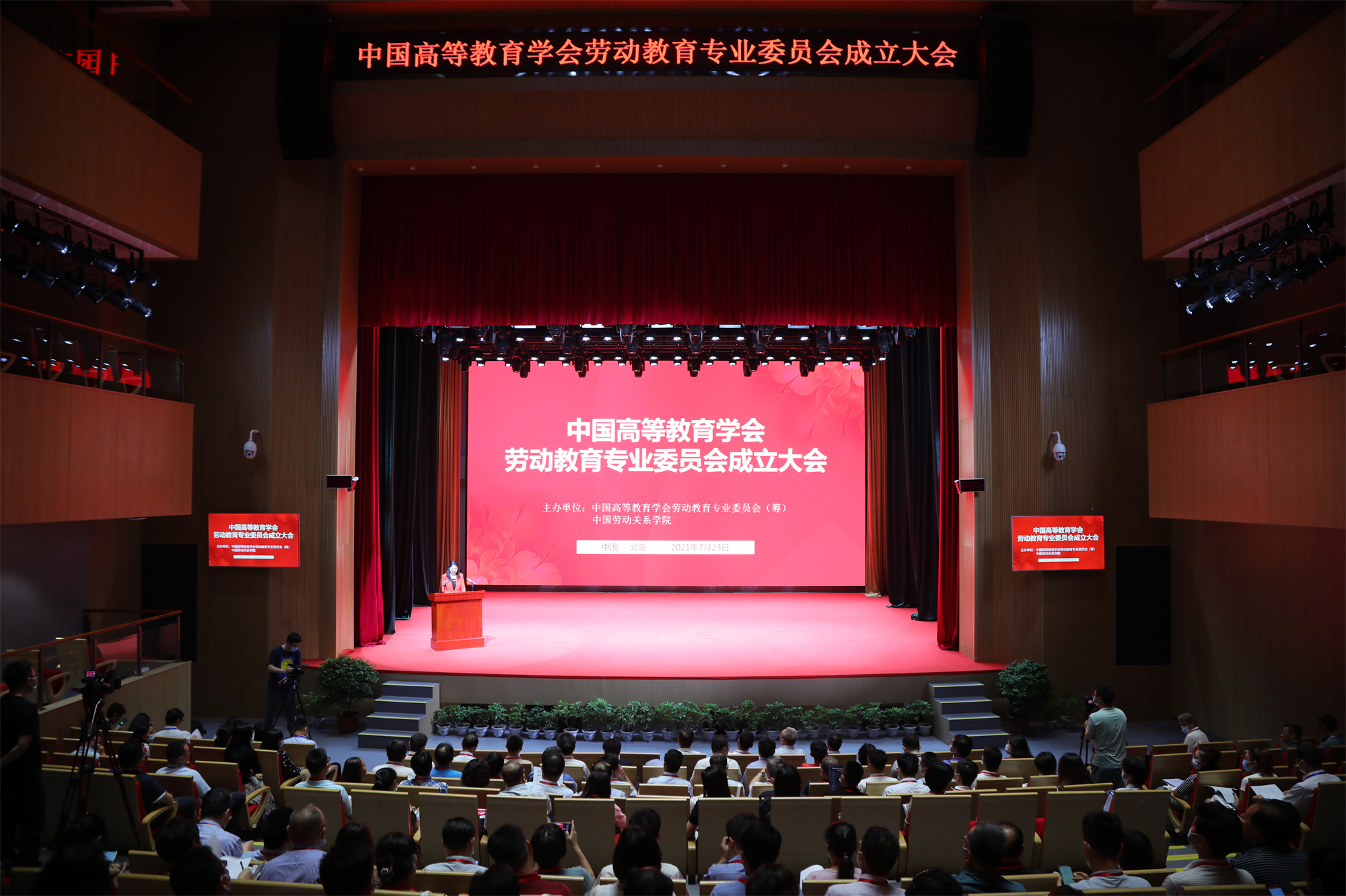 7月23日,由我校承办的中国高等教育学会劳动教育专业委员会成立大会在致远楼礼堂召开。中国高等教育学会会长,教育部原党组副书记、副部长杜玉波,中华全国总工会党组成员、经费审查委员会主任李晓钟,学会副会长、秘书长姜恩来,学会副秘书长郝清杰,我校党委书记刘向兵、校长傅德印,中国人民大学副校长顾涛、北京师范大学副校长张凯、上海财经大学常务副校长徐飞、中央财经大学副校长朱凌云、中国地质大学(北京)党委副书记林善园、安徽艺术学院副校长(正厅级)柳友荣等有关领导出席大会。会议由我校副校长刘丽红主持。