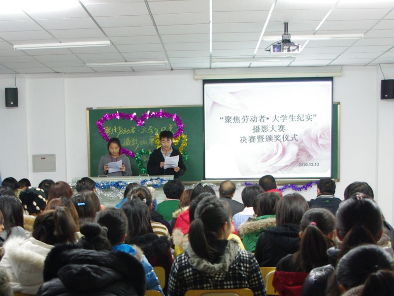 由劳动者权益关爱协会举办的首届“聚焦劳动者.大学生纪实”摄影大赛决赛暨颁奖仪式于12月13日晚6:30举行。