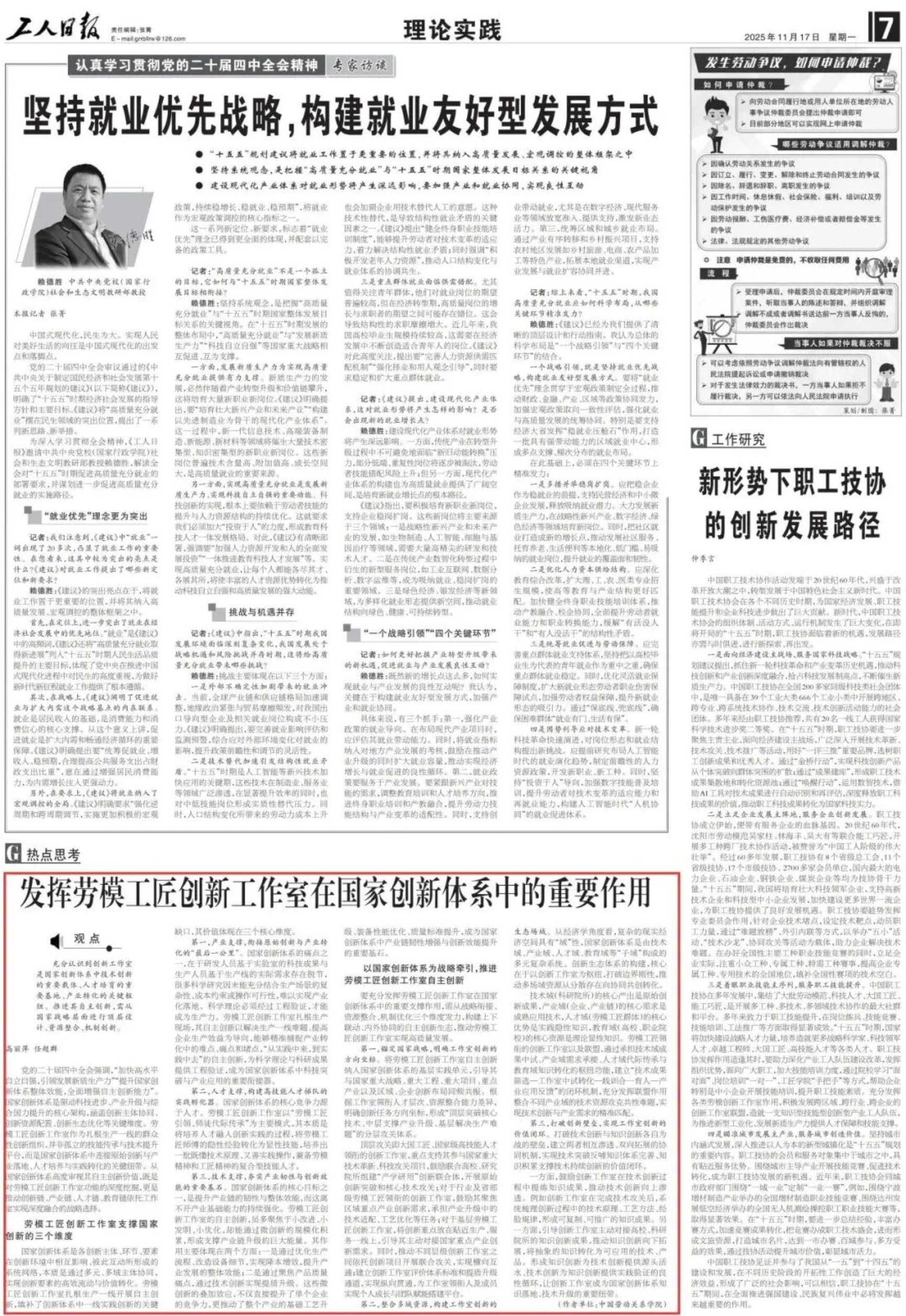 第三,技术支撑,夯实产业韧性与创新效能的重要基石。国家创新体系的核心目标之一,是提升产业链的韧性与整体效能,而这离不开产业基础能力的持续强化。劳模工匠创新工作室的自主创新,虽多聚焦于小改进、小发明、小优化,却能通过微创新的规模化积累,形成支撑产业链升级的巨大能量。其作用主要体现在两个方面:一是通过优化生产流程、改造设备细节,实现降本增效,提升产业发展的整体效能;二是通过聚焦产品质量痛点,通过技术创新实现提质升级。这些微创新的叠加效应,不仅直接提升了单个企业的竞争力,更推动了整个产业的基础工艺升级、装备性能优化、质量标准提升,成为国家创新体系中产业链韧性增强与创新效能提升的重要基石。