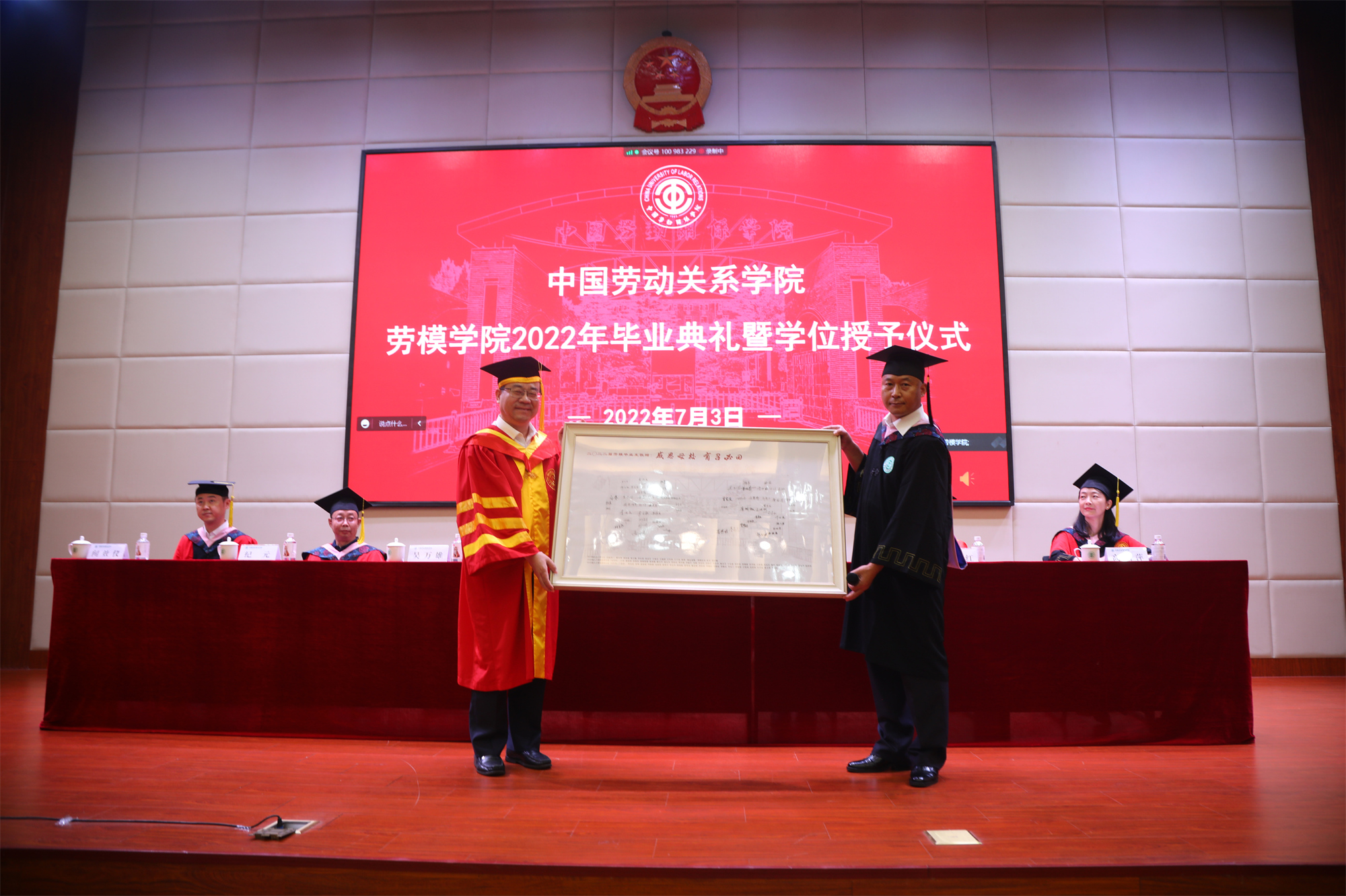 今年,共有64名2022届劳模毕业生获得毕业证书,其中14名获得法学学士学位、41名获得管理学学士学位。