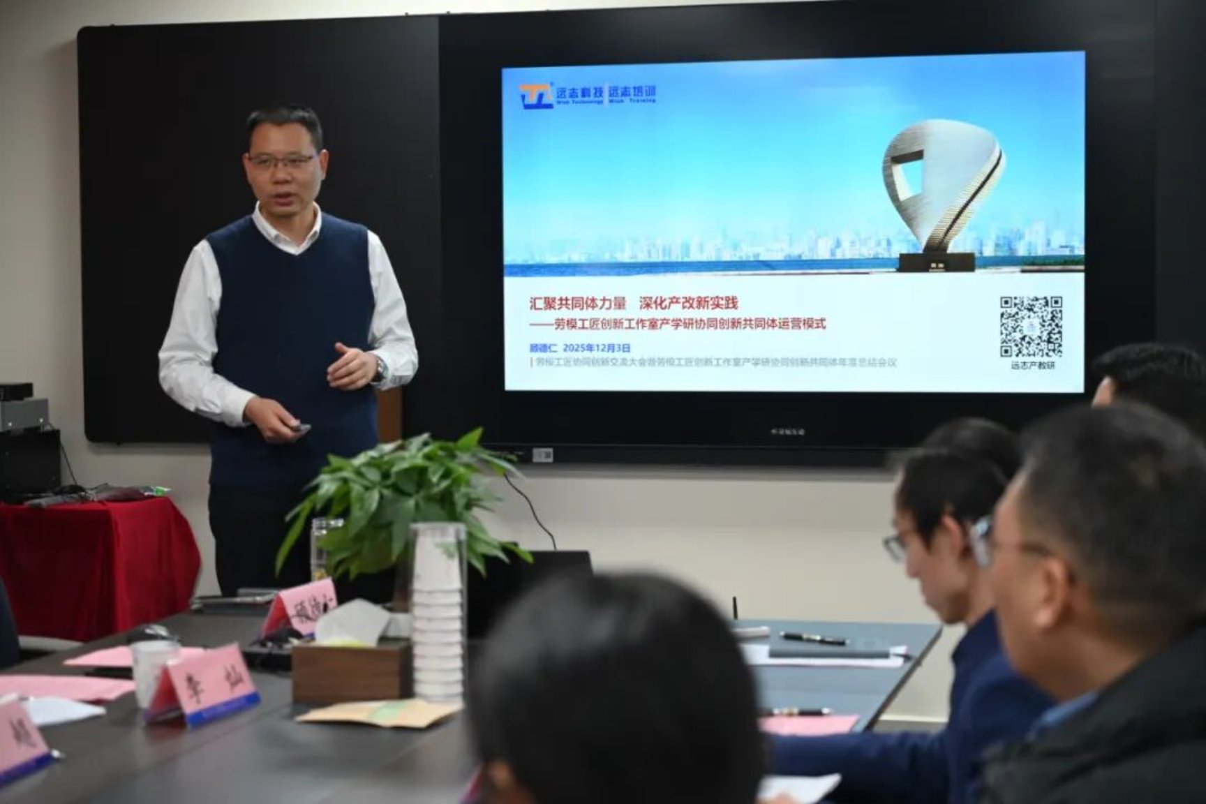 当天下午,召开共同体年度工作总结会议。共同体成员单位代表依次进行年度工作总结汇报,共同体轮值秘书长单位代表依次汇报年度工作及履职情况,劳模学院相关教师及负责人总结了共同体成立一年来的工作亮点和下一步工作努力方向。全体与会人员还就共同体2025年度工作复盘以及下一步开展产学研协同创新的路径与方向进行研讨交流。