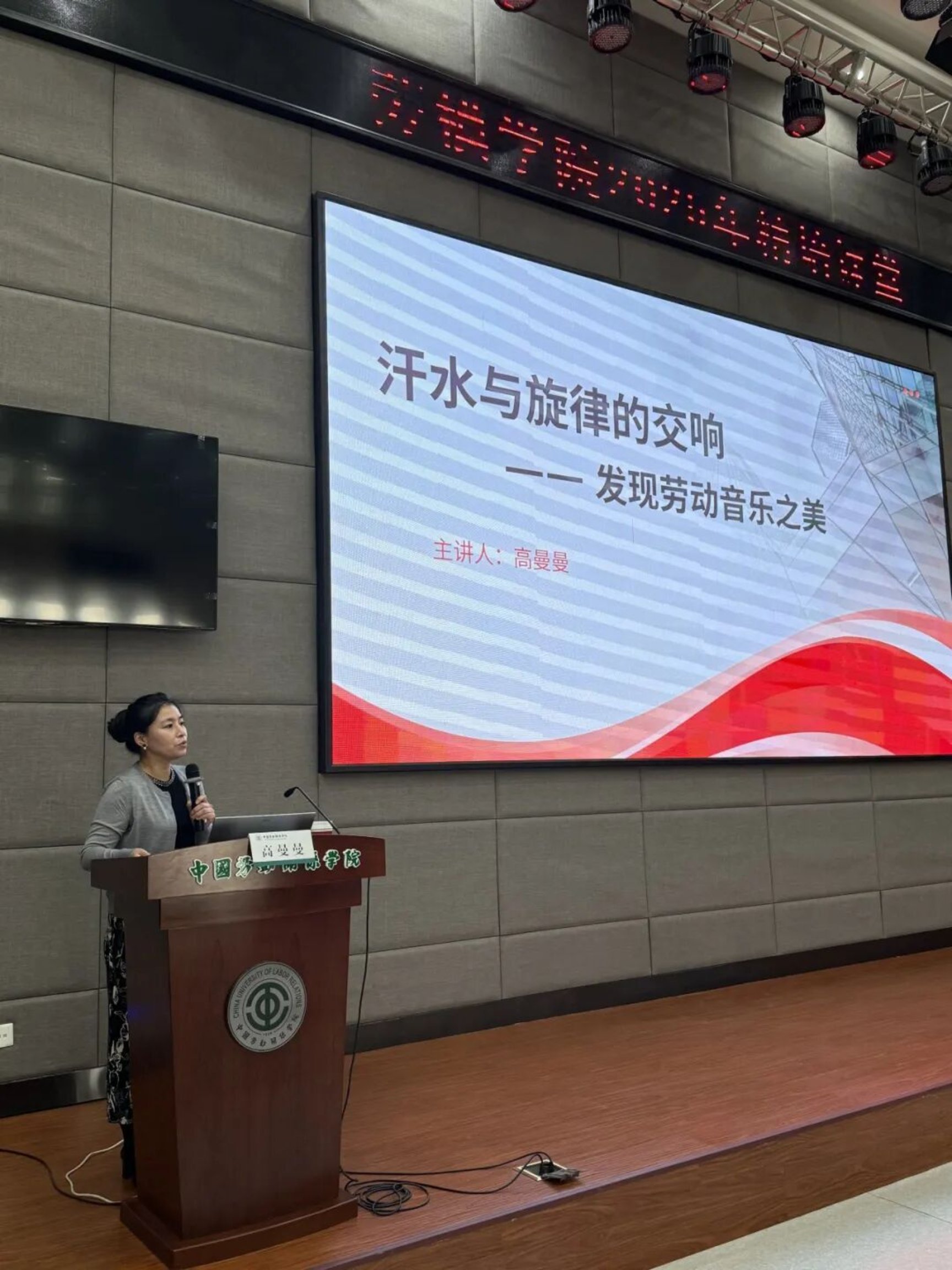 10月23日下午,劳模学院在致远楼909教室举办精培课堂主题讲座。公共教学部人文艺术教育中心主任高曼曼老师作《汗水与旋律的交响》专题授课,劳模学院教师代表及2025级劳模学生现场聆听。