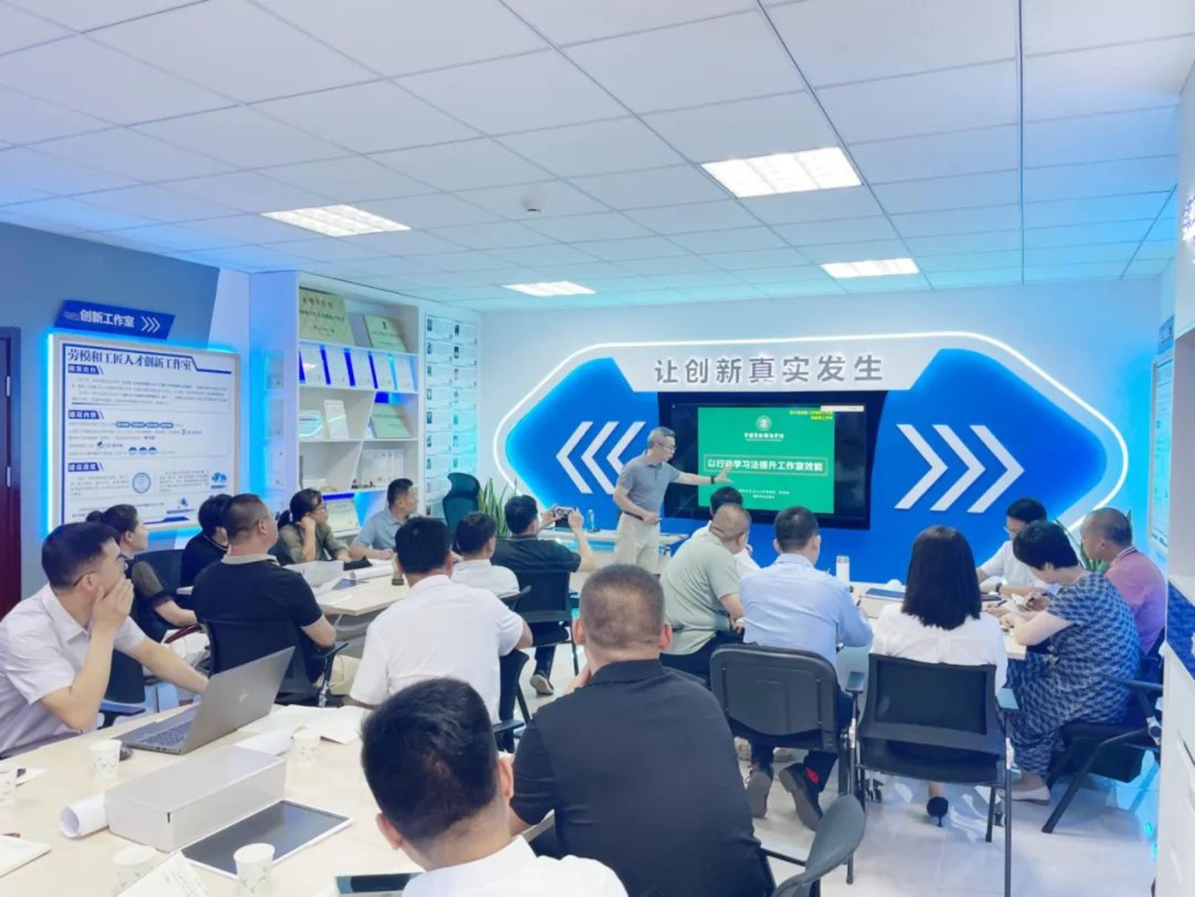 近年来,围绕国家发展战略和全国总工会中心工作,劳模学院结合人才培养目标,致力于培养提升劳模工匠创新创造能力,开展了劳模工匠创新训练营、创新研修班、创新思维精培课堂、创新工作室学术论坛、创新课题研究、创新课程研发、劳模工匠人才创新工作室交流服务平台等一系列创新实践活动。基于以上创新实践成果,劳模学院专门打造了劳模工匠创新创效空间,通过劳模工匠创新成果展示、创新研究研修、创新数据平台、创新项目孵化、创新课程研发五大模块,展示学院创新成果,营造劳模工匠创新教育生态系统,全面推进劳模工匠创新实践、创新能力培养、促进创新转化以及创新精神塑造的一体化建设。