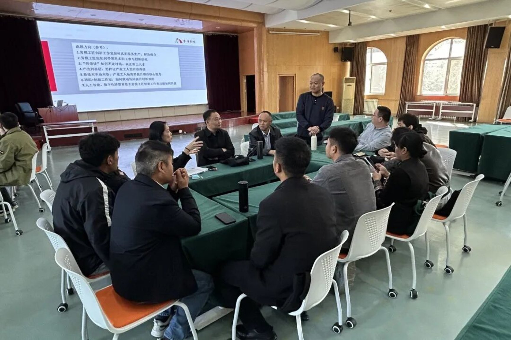 劳模学生结合课程内容与自身工作实践,围绕深化产业工人队伍建设改革有关选题方向,以小组为单位开展研讨交流,确定了各组研究方向和内容。