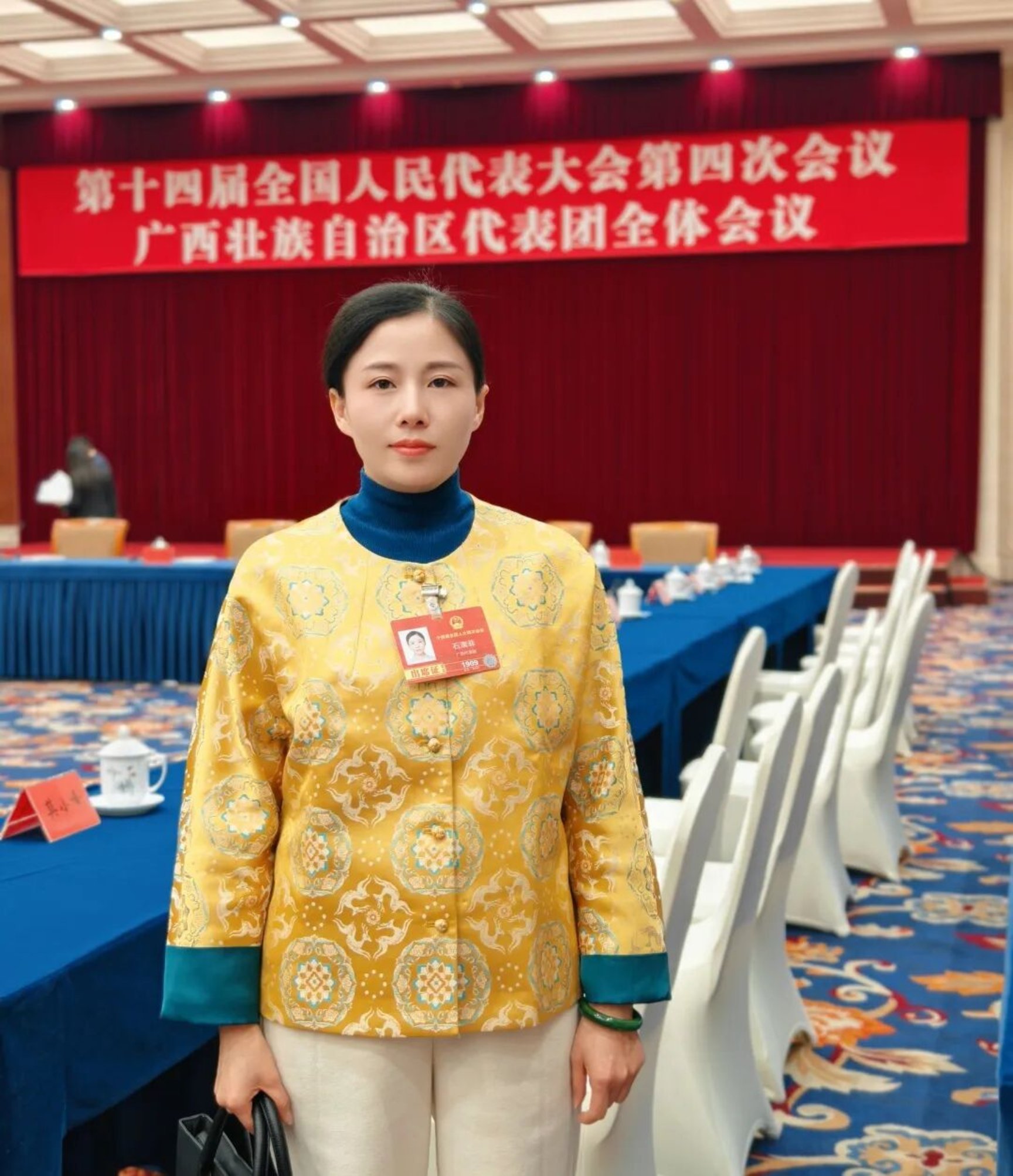 石濡菲(2026级),第十四届全国人大代表,全国劳动模范,广西梧州市苍梧县六堡镇墨石山茶厂党支部书记,广西六堡茶制作技艺非遗传承人。