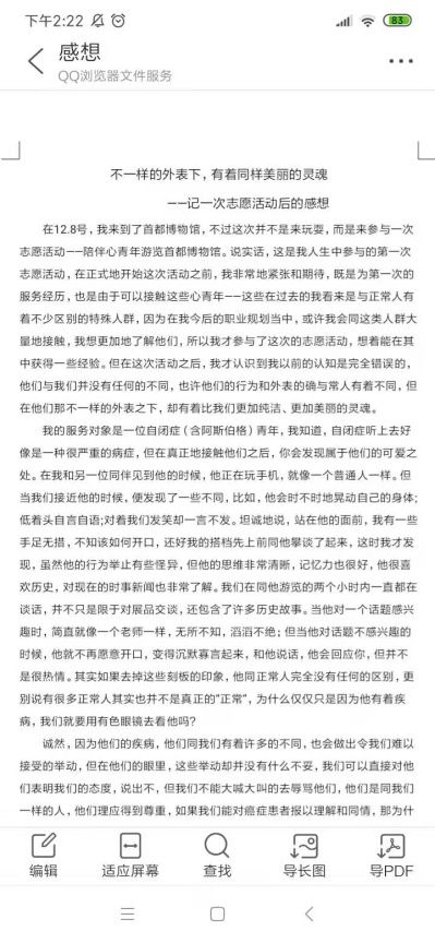 (不一样的外表下,有着同样美丽的灵魂,是王李韬同学对活动的感想)