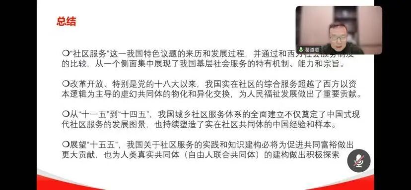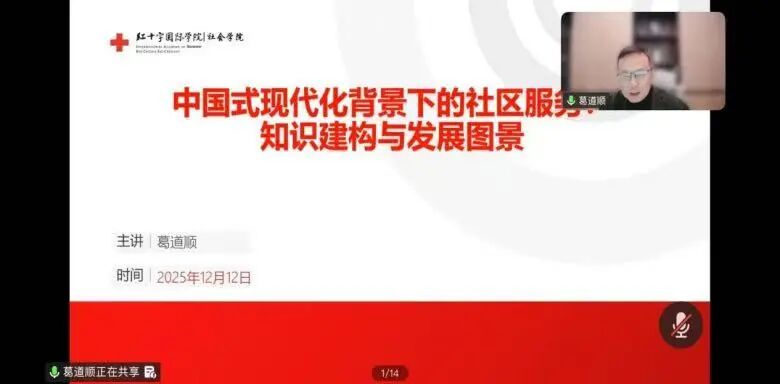 2025年12月12日晚,由我院主办的“中国式现代化背景下的社区服务:知识建构与发展图景”主题讲座,通过线上形式成功举行,本次讲座的主讲人为苏州大学特聘教授葛道顺。讲座由社会工作学院社会学系主任马红光主持。