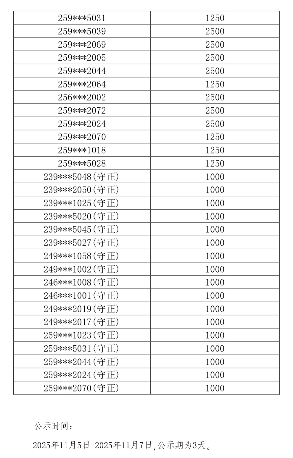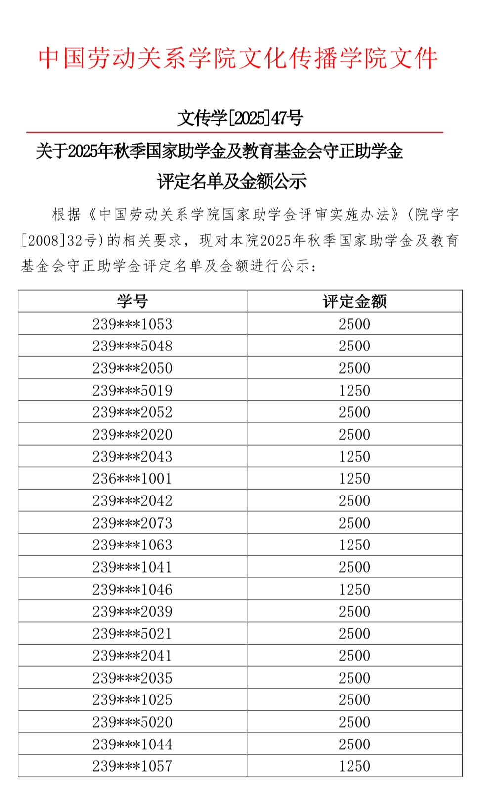 关于2025年秋季国家助学金及教育基金会守正助学金 评定名单及金额公示