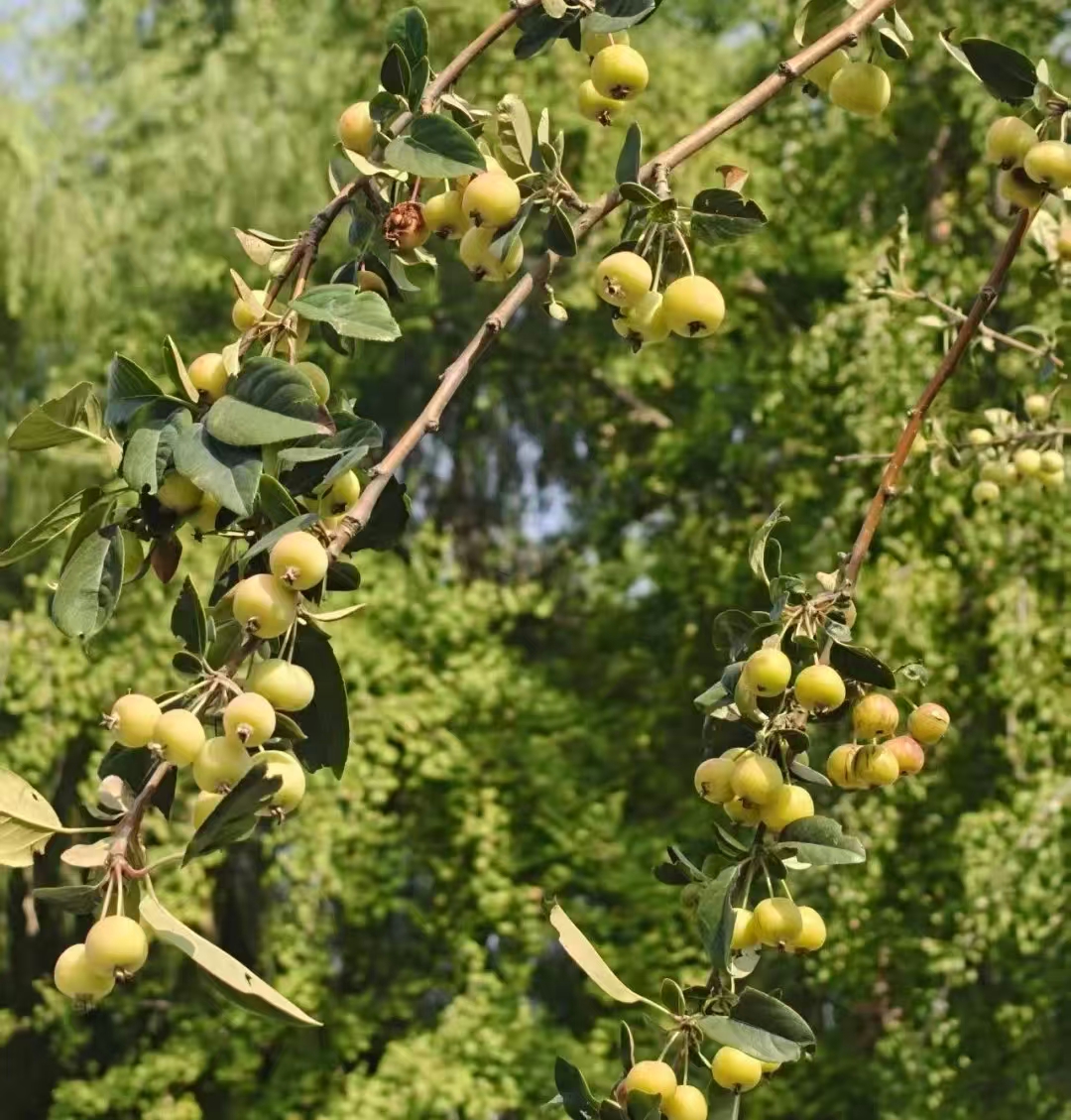 当我们开始关注身边的一花一木,你会发现铁栅栏里藏着娇艳的花、树上的山楂已经有了变红的趋势。