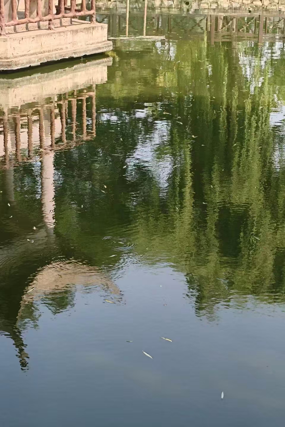 如果我们愿意俯身,看绿色的湖水荡漾出层层涟漪,看古朴的亭子映在湖中的倒影,那我们大概就会懂得了氛围感的含意。