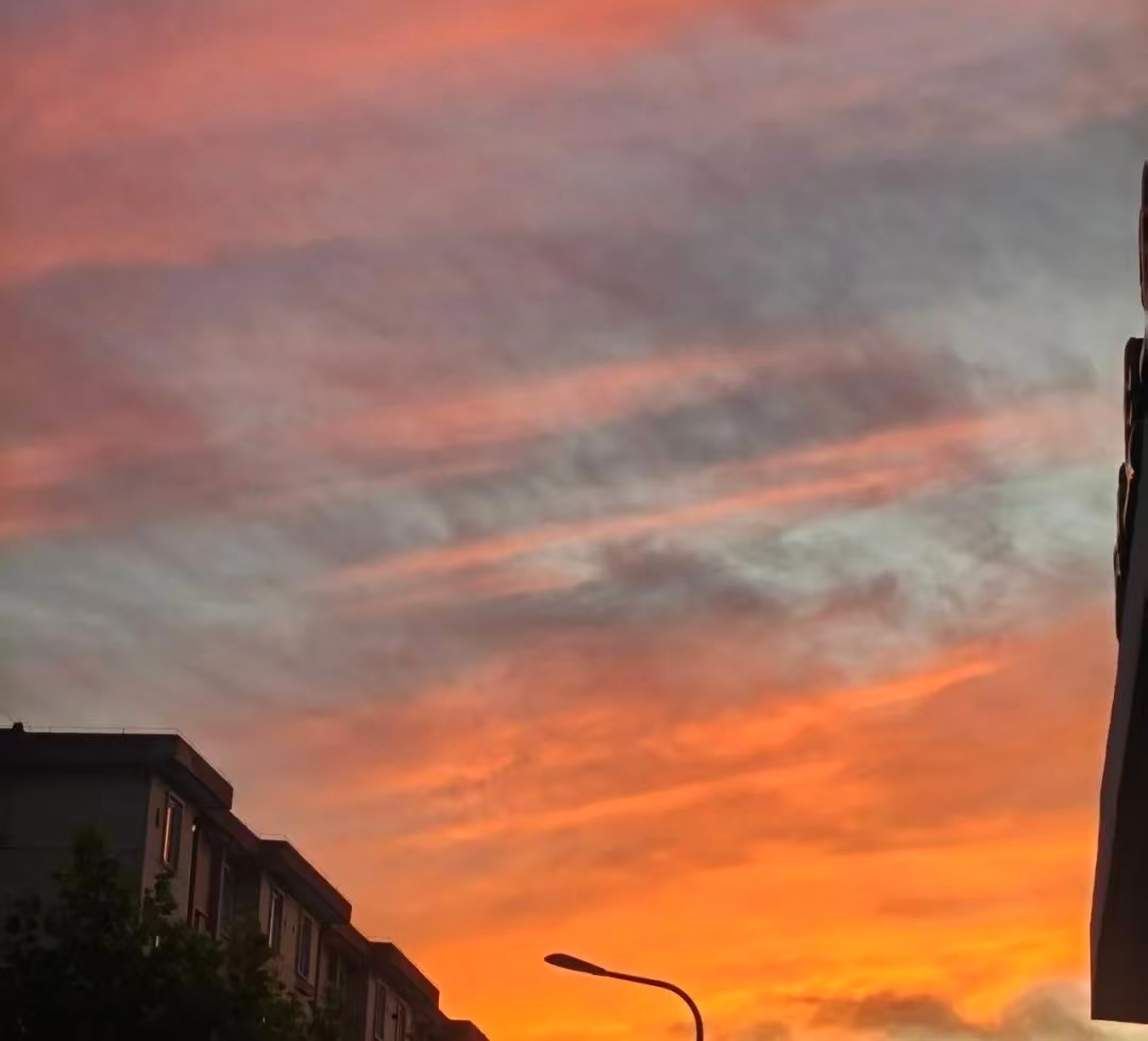 夕阳西下,我们的注意力被天边动人的色彩所吸引,在这场鲜艳的火烧云里,万物趋于了宁静。