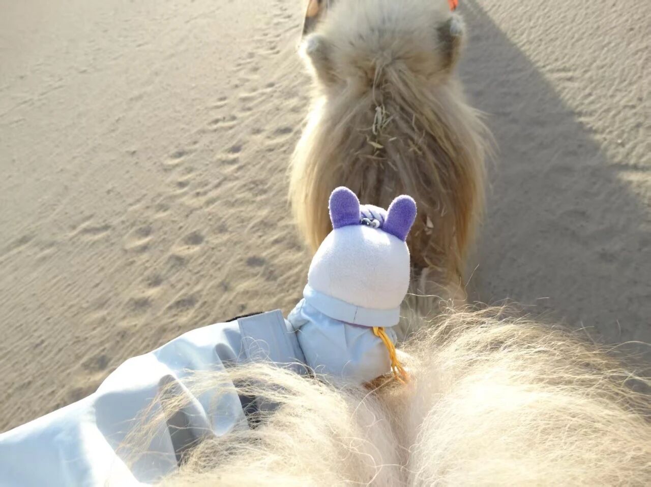 兔被举上去,落进两座驼峰之间的凹陷里。驼铃响第一声时,骆驼站了起来,从膝盖的高度升到天空的高度,世界一下子被拉长,天变得更近,沙变得更远,世界的黄色和蓝色渐渐平衡。风把铃声吹散了,吹进沙粒里,吹进无边无际的金色里。而当你发现自己只是这金色海洋里一粒移动的灰尘时,反而松了一口气——原来不需要那么重要,原来不重要也可以很安心。