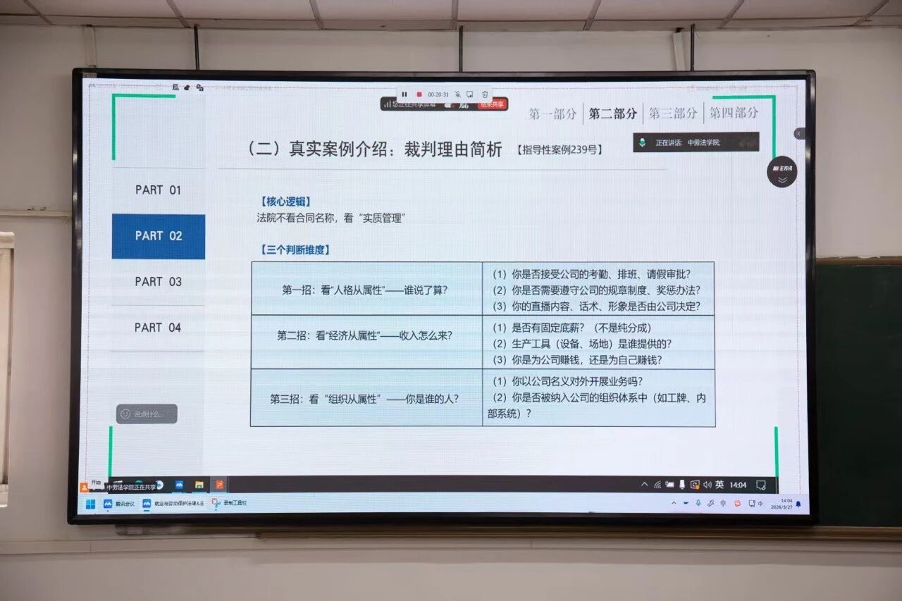 3月27日,由文化传播学院、法学院及学生处党委学生工作部联合主办的“就业与劳动保护法律&主播避坑MCN”专题讲座在北京校区致远楼909教室举行,涿州校区阶梯教室二同步设置分会场,并通过线上会议平台向全校学生开放。