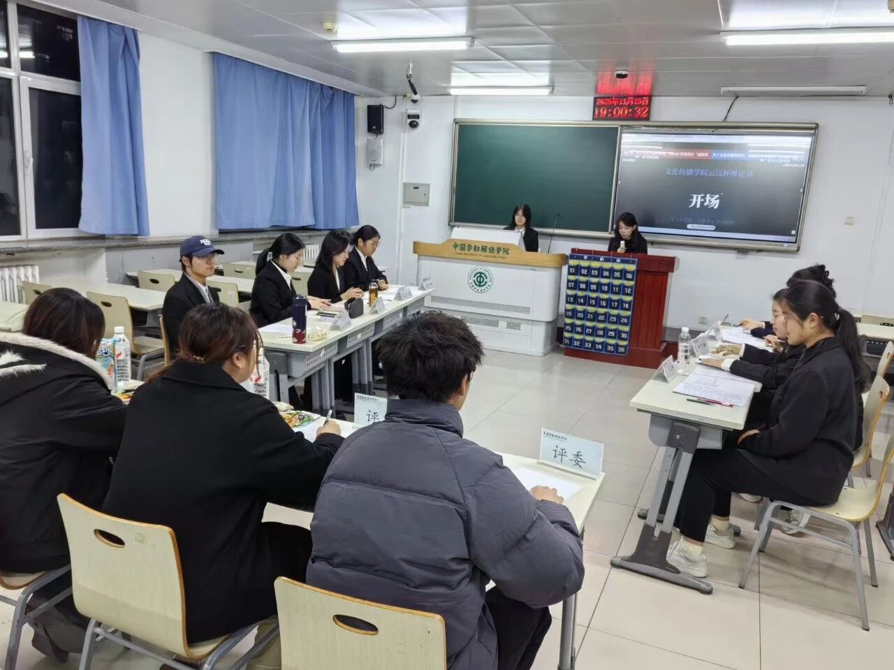 2025年11月15日至16日,文化传播学院“云汉杯”辩论赛初赛在涿州校区一教301教室顺利举行。辩论,是智慧的交锋,是言辞的激荡,更是思想的碰撞。本届赛事以“辩溯‘文’潮向,论振‘言’入心”为主题,引领选手与观众一同在言语的河流中溯源文脉,在观点的激荡中叩击心灵。