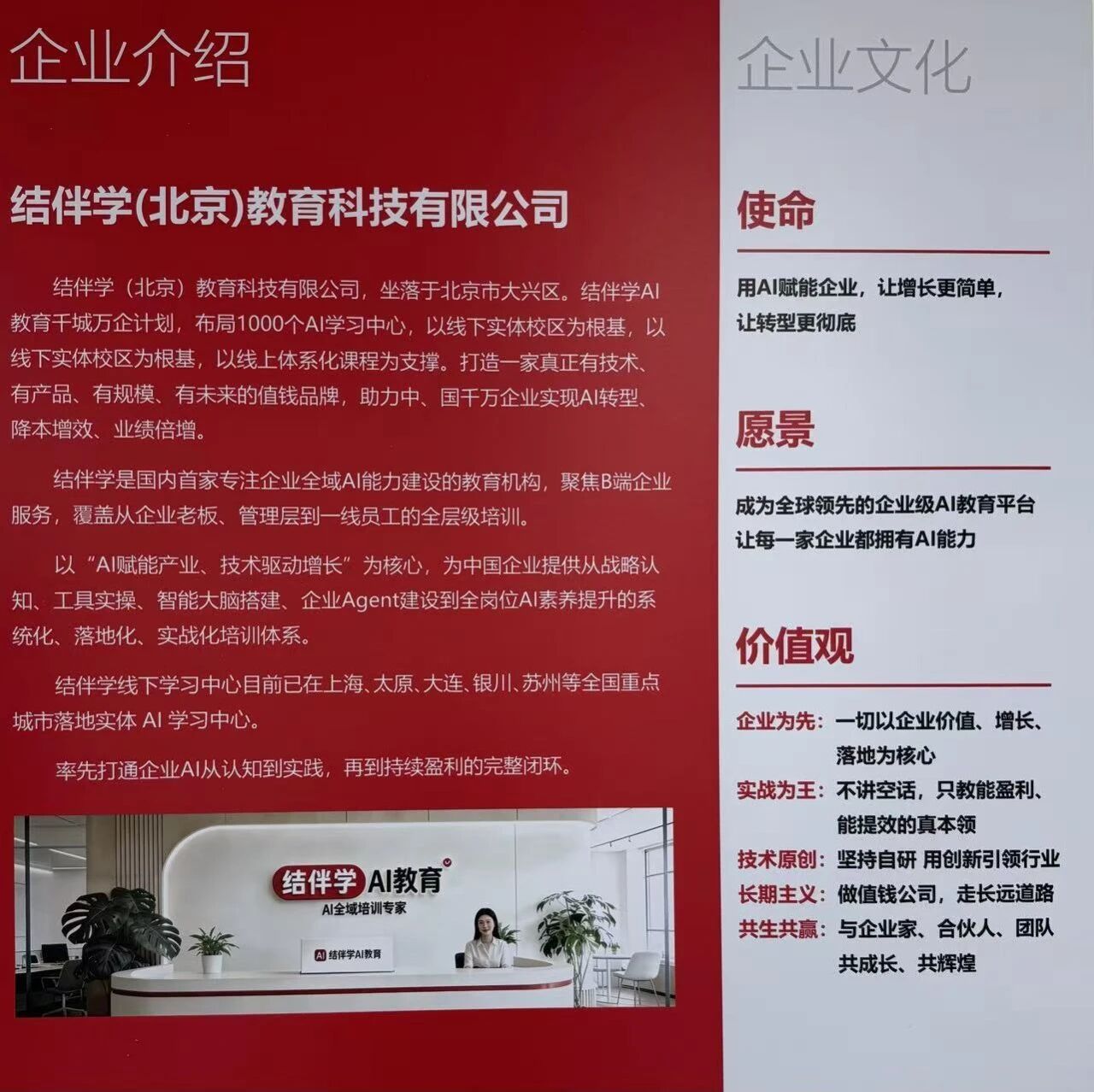 “结伴学”AI教育是国内AI全域培训领域的标杆企业,由高转化GEO体系开创者封川(大川老师)创办,企业深耕搜索算法与AI应用领域15年,兼具阿里巴巴、Opera等名企高级管理履历,自主研发了挖词宝、图谱宝、布词宝等多款AI工具,服务超3000家企业用户,付费学员超10000人,在AI营销、新媒体运营、数字内容创作等领域拥有成熟的产业资源与人才培养体系。