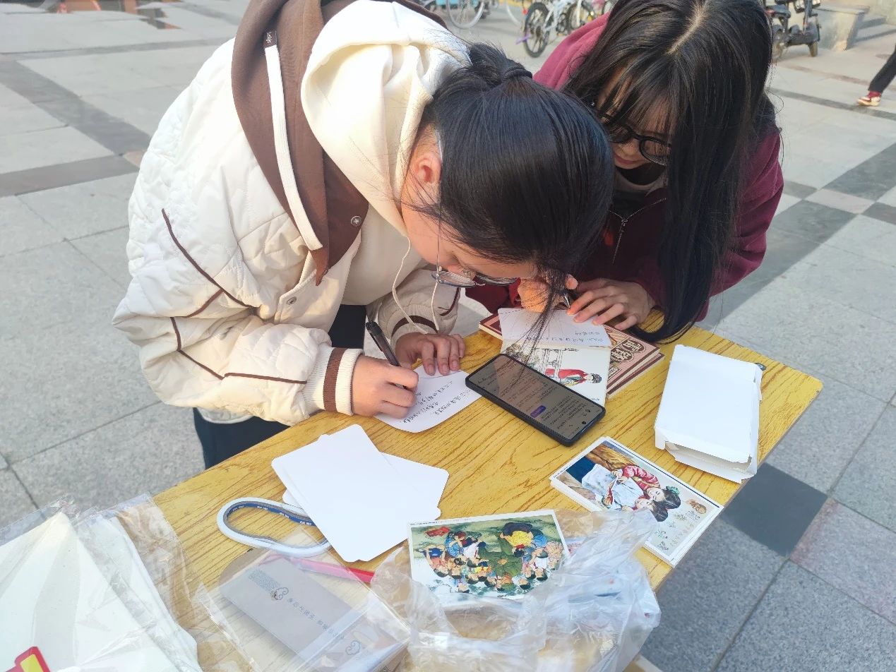 活动分为线上和线下两个部分进行。在线上环节,我们设置了“集赞”活动,学生们通过制作电子明信片并收集点赞,还有机会获得精美奖品,吸引了广大师生的积极参与。线下环节则是在涿州校区食堂前的空地上,我们开展了“笺传跫音 墨染青衿”明信片制作活动,许多同学们写下了许多感人肺腑的话语,用声音铭刻下劳模们感人至深的奋斗故事和真挚动人的劳动体悟,表达了自身对劳动的崇尚和对劳动者的感恩。
