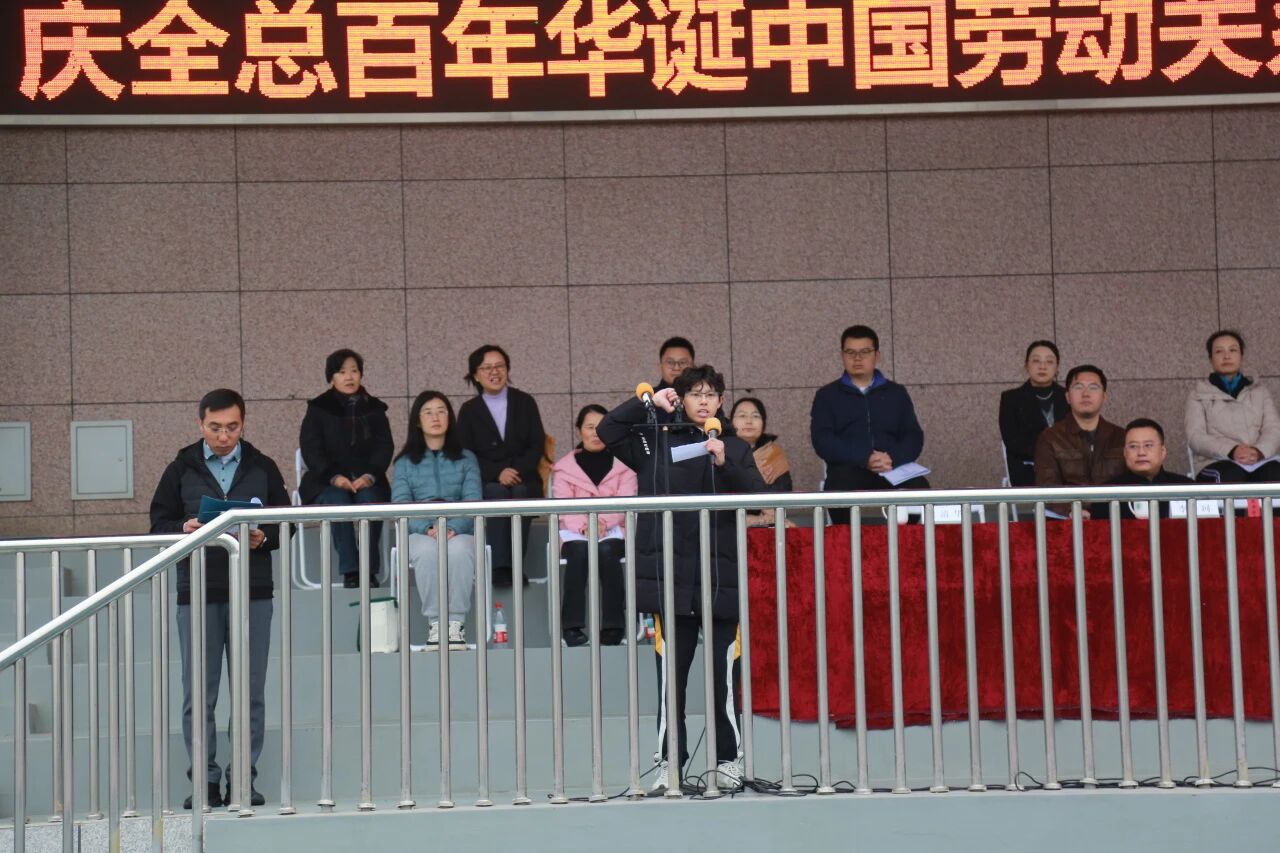 升旗仪式结束后,傅德印校长致辞。他以中华全总工会成立一百周年为引展开讲话,强调了劳动精神与拼搏精神于青年学子的重要性,亲切慰问了中劳学子与运动会成员,对学子们的体育发展予以深切期盼。