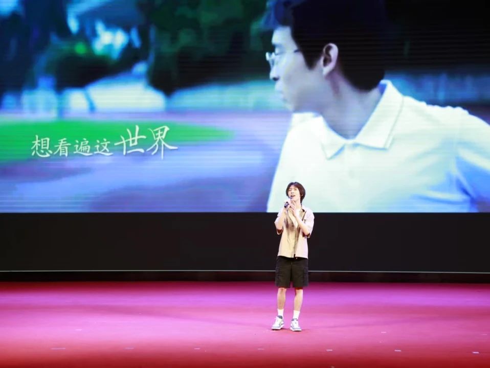 赖世伟同学举起话筒,正式拉开了晚会帷幕。他用这首动人的歌曲,带领毕业生们回望青春,致敬成长。轻快的旋律与深情的演唱很快点燃了现场的气氛,掌声不断。毕业生们的回忆被赖世伟同学的演绎勾起,共同找寻那个曾经纯粹炙热的自己,也拥抱如今更加坚定成熟的自己。