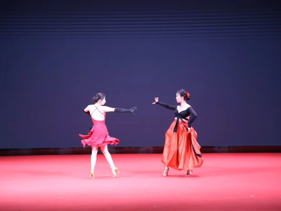 接下来,丁玥妍、梁文蕙同学的舞步,让在座的观众迎接了一场热情奔放的风暴。她们舞姿卓越,配合默契,伴随着动感的音乐,以铿锵的响板、飞扬的裙摆和雷霆般的踏击,点燃了整个礼堂。这场力与美的盛宴,不仅展现了她们的才艺,赢得了所有同学的掌声与喝彩,更代表着她们将会踏上更大的舞台,迎接更加绚丽的人生。