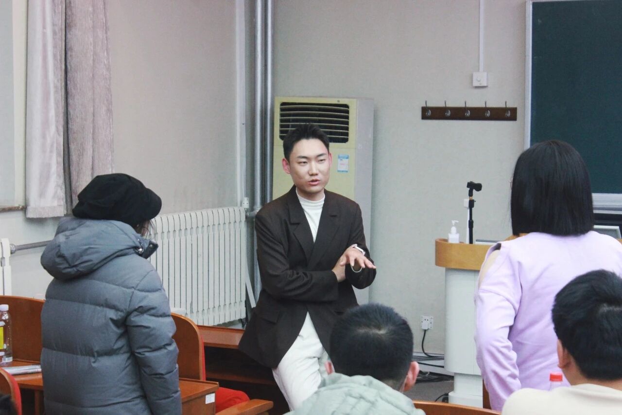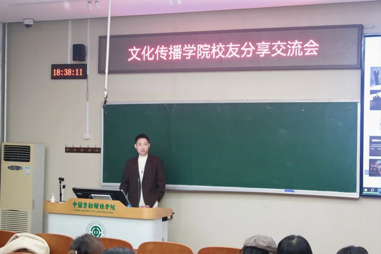 2025年11月17日晚18:30,文化传播学院在闻道楼阶梯教室成功举办了校友职业经验分享会。本次活动特邀我院2020级校友、郑州冰煜文化传播有限公司创始人苏铭煜返校交流,分享其在短剧与漫剧领域的职业经历与行业见解。分享会由学院王晨老师主持,吸引了众多在校研究生与本科生积极参与。