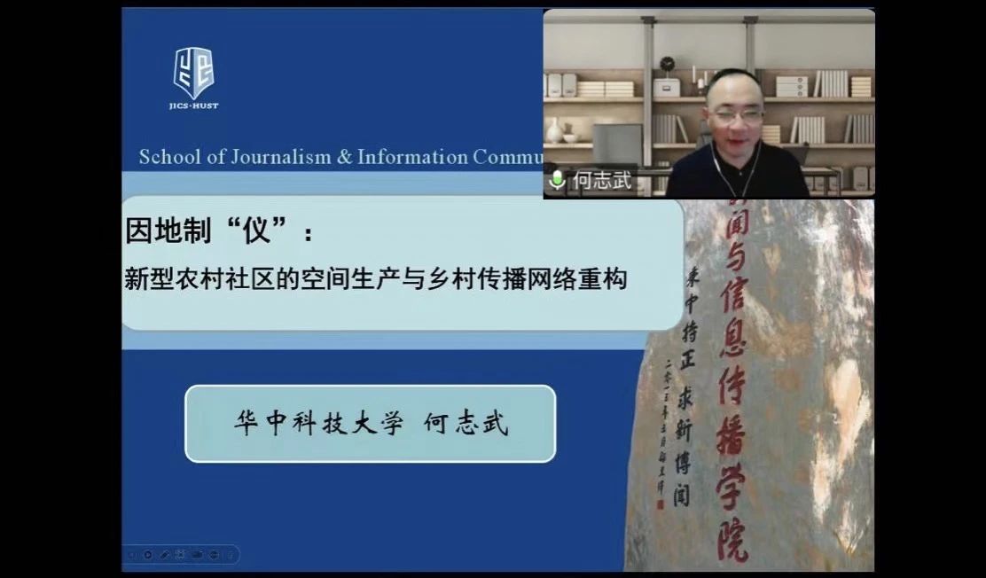 为提升强化研究生培养质量,2024年5月29日晚6点半至8点半,由中国劳动关系学院研究生主办、文化传播学院承办的增光传媒前沿论坛“传播与社会发展”学术讲座活动在腾讯会议线上举行。本次讲座主题为《因地制“仪”:新型农村社区的空间生产与乡村传播网络重构》,由华中科技大学新闻与信息传播学院教授、博士生导师,中国新闻史学会新闻传播教育专业委员会副理事长兼秘书长何志武主讲,文化传播学院副院长吴麟老师主持,文化传播学院全体研究生、部分本科生,以及北京师范大学等高校师生参与。