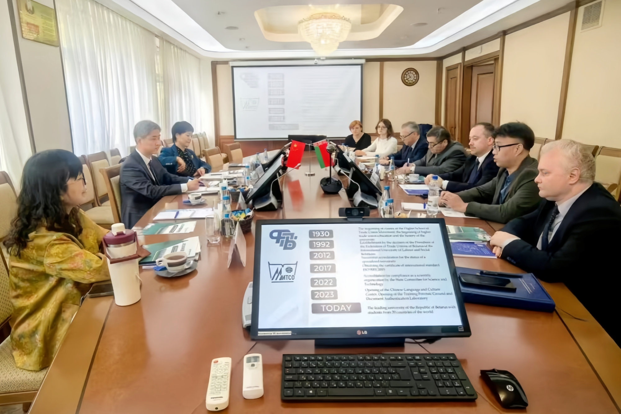 代表团还应邀到访白俄罗斯工会联合会,与白俄罗斯工会联合会领导举行会见并座谈。白俄罗斯工会联合会副主席瓦季姆·格拉乔夫对我校代表团的来访表示热烈欢迎,转达了主席尤里·先科的问候和良好祝愿,并期望继续深化双方工会院校沟通合作。闻效仪希望我校同国际劳动与社会关系学院有更多交流互动,助推两国工会的合作更加深入、长远。