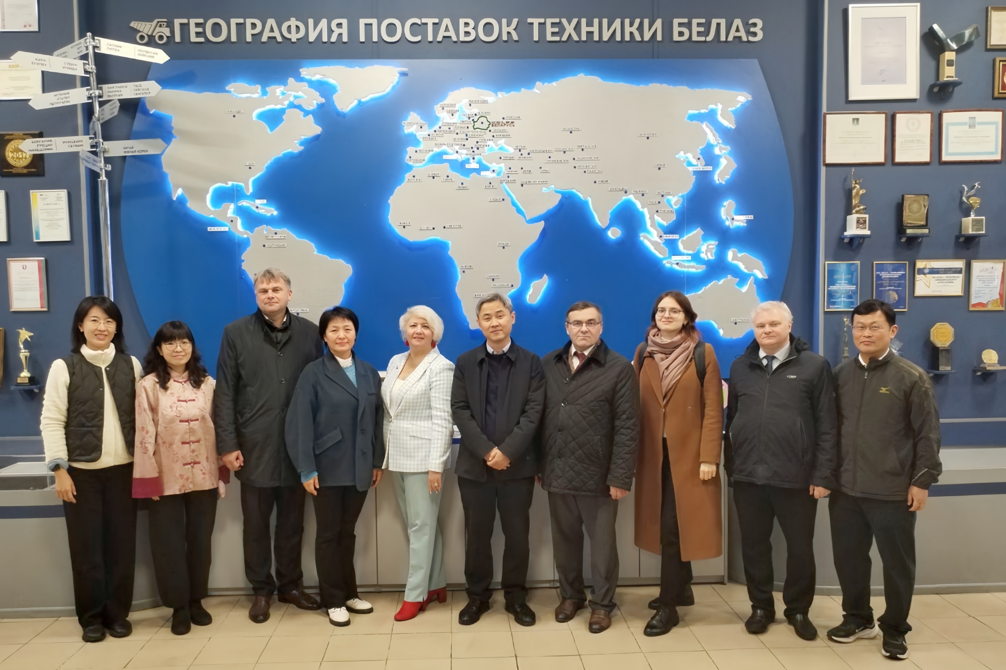 访问期间,代表团应邀参观了别拉斯自卸车厂,并与工厂基层组织工会围绕企业工会如何发挥作用、工会经费预算使用等问题开展座谈交流。