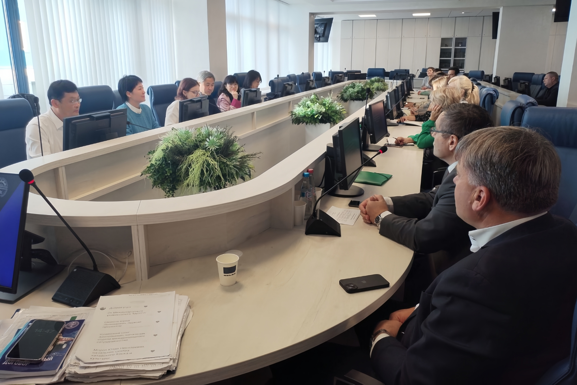 10月15日上午,代表团一行参观了国际劳动与社会关系学院汉语和中国文化中心、现代识别技术教学实践实验室、刑侦实验室,就工会干部培训、科研合作、师生交流等合作议题进行磋商。闻效仪在致辞中回顾了两校友好交往的历程和成果,指出作为兄弟院校,期待双方深化提升全面交流与合作。国际劳动与社会关系学院校长弗拉基米尔·米哈伊洛维奇表示,愿大力推进两校在本科、研究生培养层面的合作和交流,推进双学位项目建设。第一副校长尤里·列昂尼多维奇表达了国际劳动与社会关系学院同我校文化传播学院、法学院联合办学的强烈意愿。我校国际交流合作处负责人对推动两校合作提出具体建议,经深入讨论,双方在学生交流交换、开展冬夏令营、深化教师交流、联合开展学术研究与科研项目等方面达成初步合作意向。