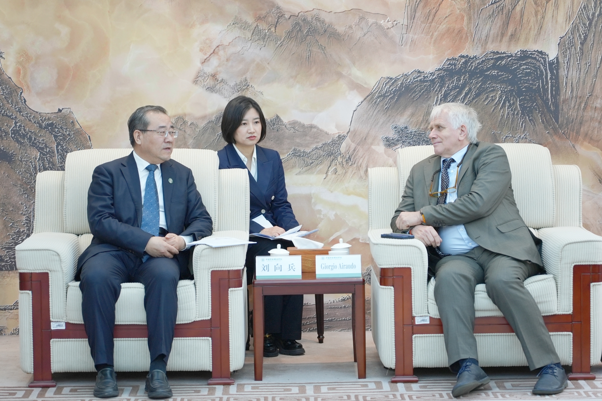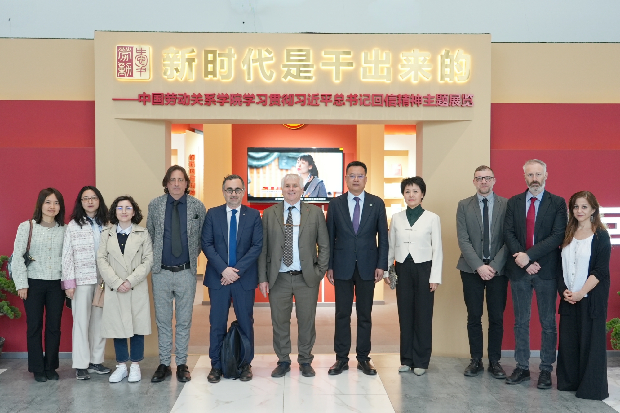 我校党委书记刘向兵会见了代表团一行,对乔治奥·艾劳多团长一行的到来表示热烈欢迎。他简要介绍了学校办学历程,强调学校作为中国工会系统的最高学府,在工会与劳动理论研究、学科建设、工会国际交流等方面具有独特优势。他希望,以此次访问为契机,推动中意两国工会、劳动领域的学术交流合作,促进两国工会在工会理论与实务、工会干部培养等方面的经验分享与探讨,为两国工会交流和学术研究积累有益经验。乔治奥·艾劳多对我校的热情接待表示感谢。他介绍了代表团各位成员,并期待双方就经济社会变革中的工会工作进行深入交流。