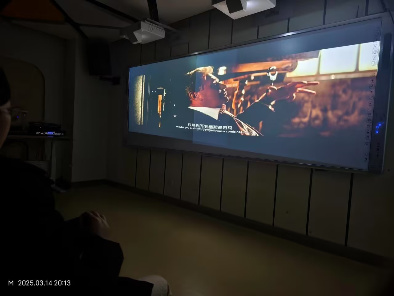 专注的神情:当银幕亮起,同学们的目光立刻被吸引,教室里鸦雀无声,只有电影的声音在回荡。随着剧情推进,大家的表情时而紧张,时而疑惑,完全沉浸在诺兰打造的梦境迷宫中。惊叹的瞬间:当电影中出现折叠的城市、失重的走廊等震撼场景时,教室里响起了一片低声的惊叹,有的同学甚至忍不住捂住了嘴巴,仿佛身临其境。沉思的时刻:当柯布与妻子的感情线逐渐展开,许多同学的神情变得凝重,有的低头沉思,有的轻轻叹息,似乎被影片中关于执念与救赎的主题深深触动。讨论的热情:电影结束后,同学们迫不及待地开始讨论,有人分析梦境逻辑,有人感慨角色命运,教室里充满了热烈的交流声。