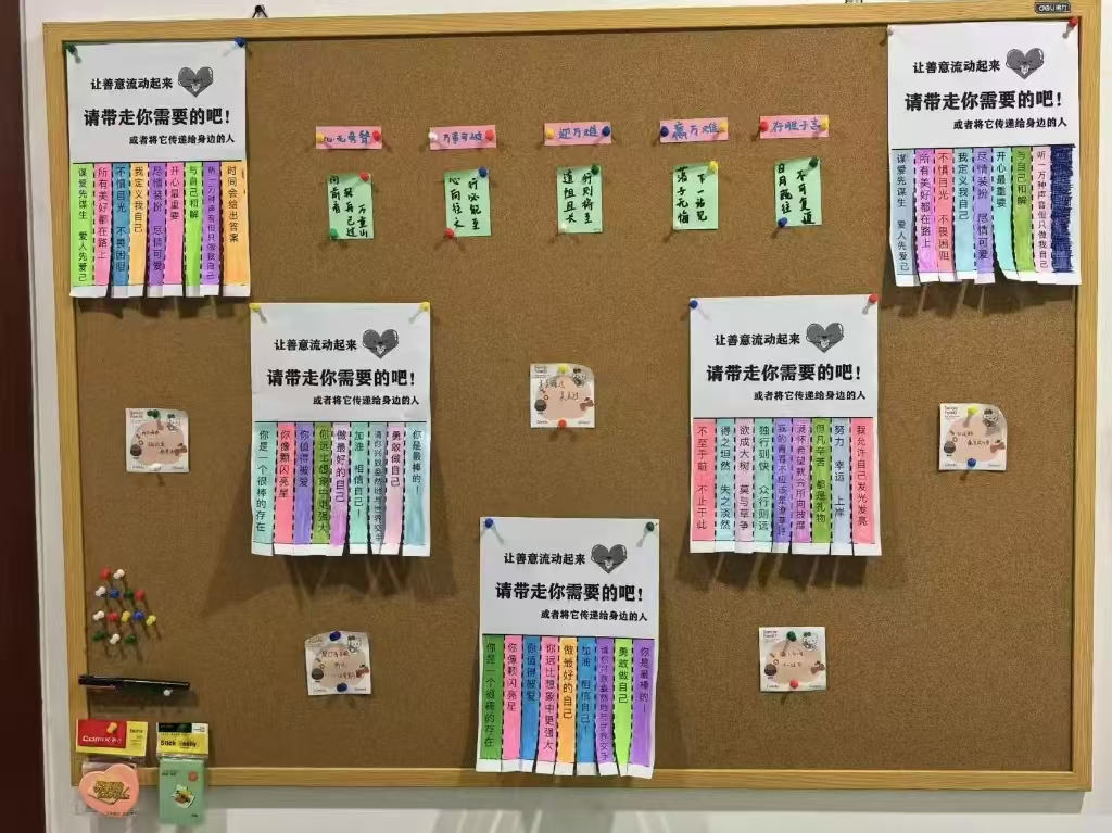 “让爱流动起来!”文化墙上的每一份资源——一句鼓励、一个建议、甚至一张可爱的小画,都等待被你带走,或传递给身边的人。无论是汲取力量,还是成为他人的光,你都能在这里找到属于自己的角色。