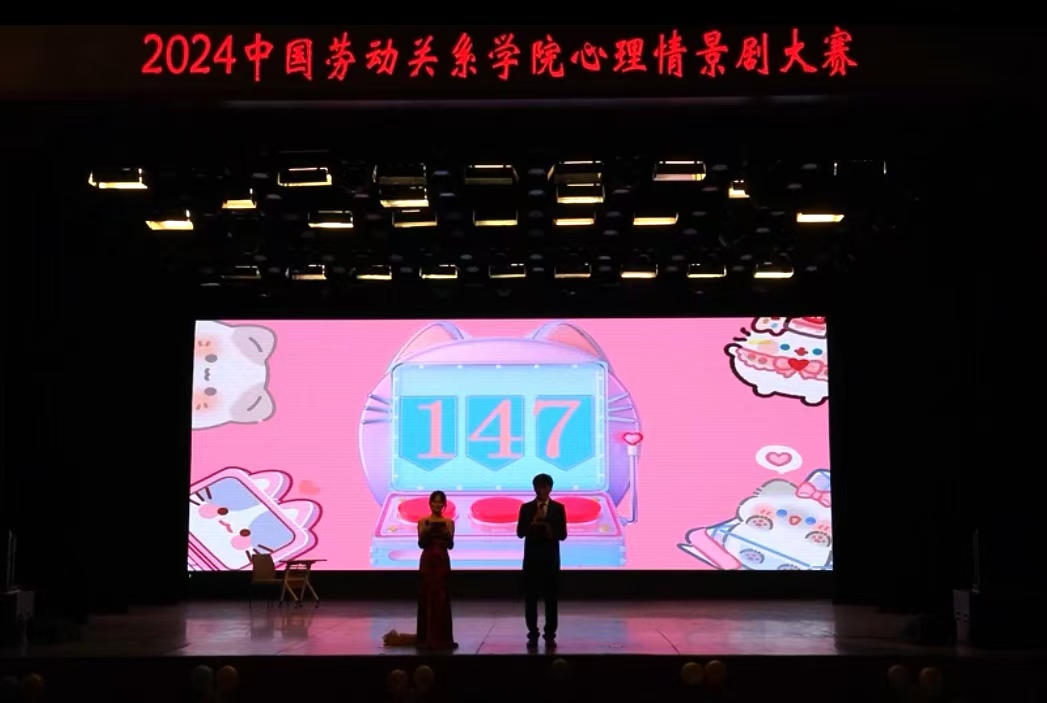 为进一步提高大学生心理素质水平,营造温馨和谐的校园氛围,11月25日下午6:30由中国劳动关系学院心理健康教育与咨询中心指导,大学生心理健康协会主办的"剧启心扉,愈见希望"2024年中国劳动关系学院心理情景剧大赛在涿州校区礼堂隆重举行。本次大赛邀请到心理中心罗锐老师、张好老师以及文化传播学院戏剧影视文学系蔡东辰老师莅临现场。