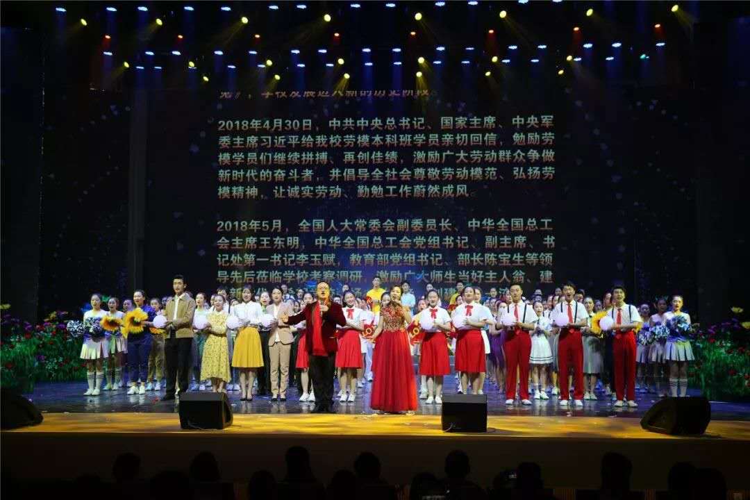 伴随着《劳动最光荣》熟悉的旋律响起,《保卫黄河》《咱们工人有力量》《美好新时代》等经典歌曲谱成一曲《劳动者之歌》。由学校老师演绎的歌曲联唱《劳动者之歌》既唤起了老一辈革命家和建设者的时代记忆,展现了一代又一代中劳人不忘初心、砥砺前行的奋斗历程。