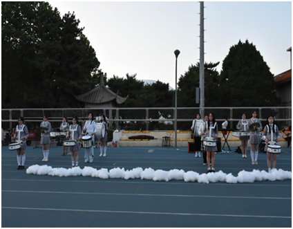 鼓队表演带给全场观众非同一般的视听震撼,让同学们共同沉浸在鼓乐齐鸣的磅礴气势中。不同风格的歌曲令人陶醉其中,摇滚社和泛音西乐部带来的乐队演唱点燃全场,现场掌声不断。其他三个学生社团带来的舞蹈也让人眼前一亮,一场场精彩的表演在青春的舞台上展现。