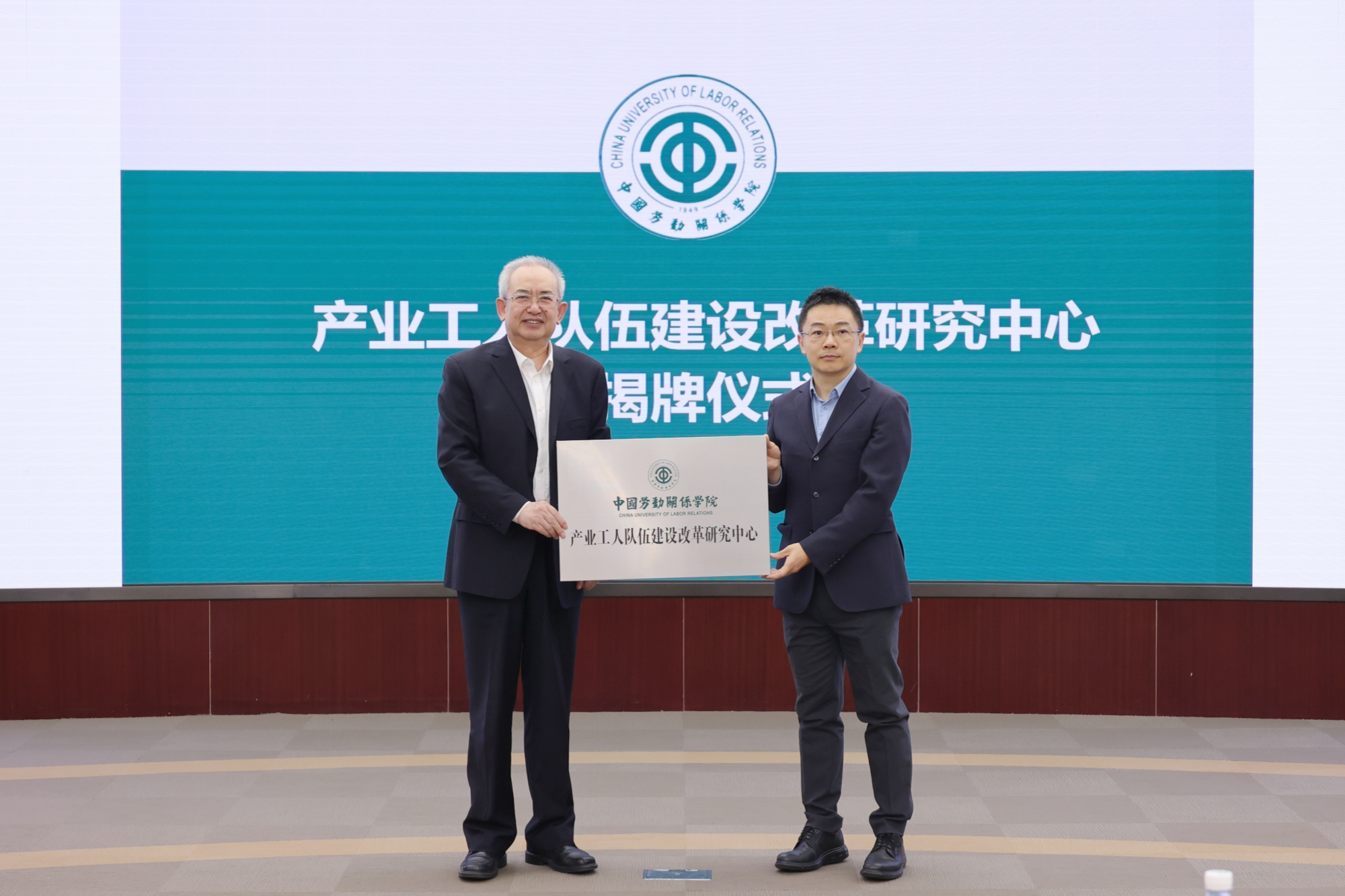 随后,张彦海与劳动经济学会副会长、工会与劳动力市场专委会主任燕晓飞共同为专委会揭牌。傅德印与工会与劳动力市场专委会秘书长、中国劳动关系学院产业工人队伍建设改革研究中心主任赵明霏共同为产业工人队伍建设改革研究中心揭牌。