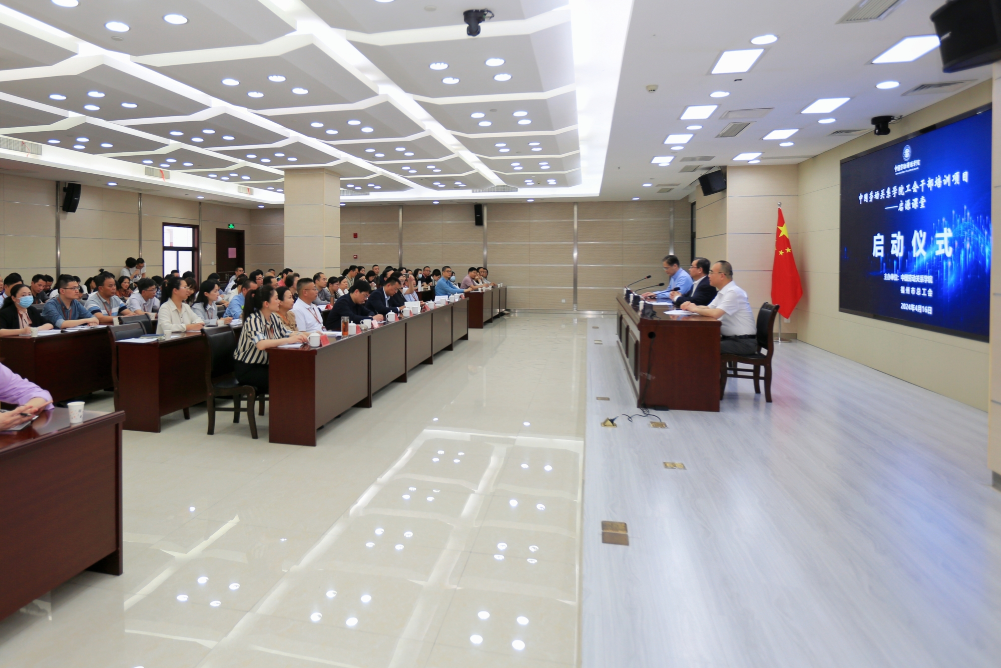 4月16日下午,我校“迎校庆——75场公益讲座”首场报告暨工会干部培训项目“启源课堂”启动仪式在福州市总工会举行。学校党委书记刘向兵,党委常委、副校长、工会学院院长李珂,党委常委、工会干部培训学院院长戴筱筱,福建省总工会干部学校校长纪荣凯,福州市总工会党组书记、副主席、一级调研员林如长出席启动仪式。
