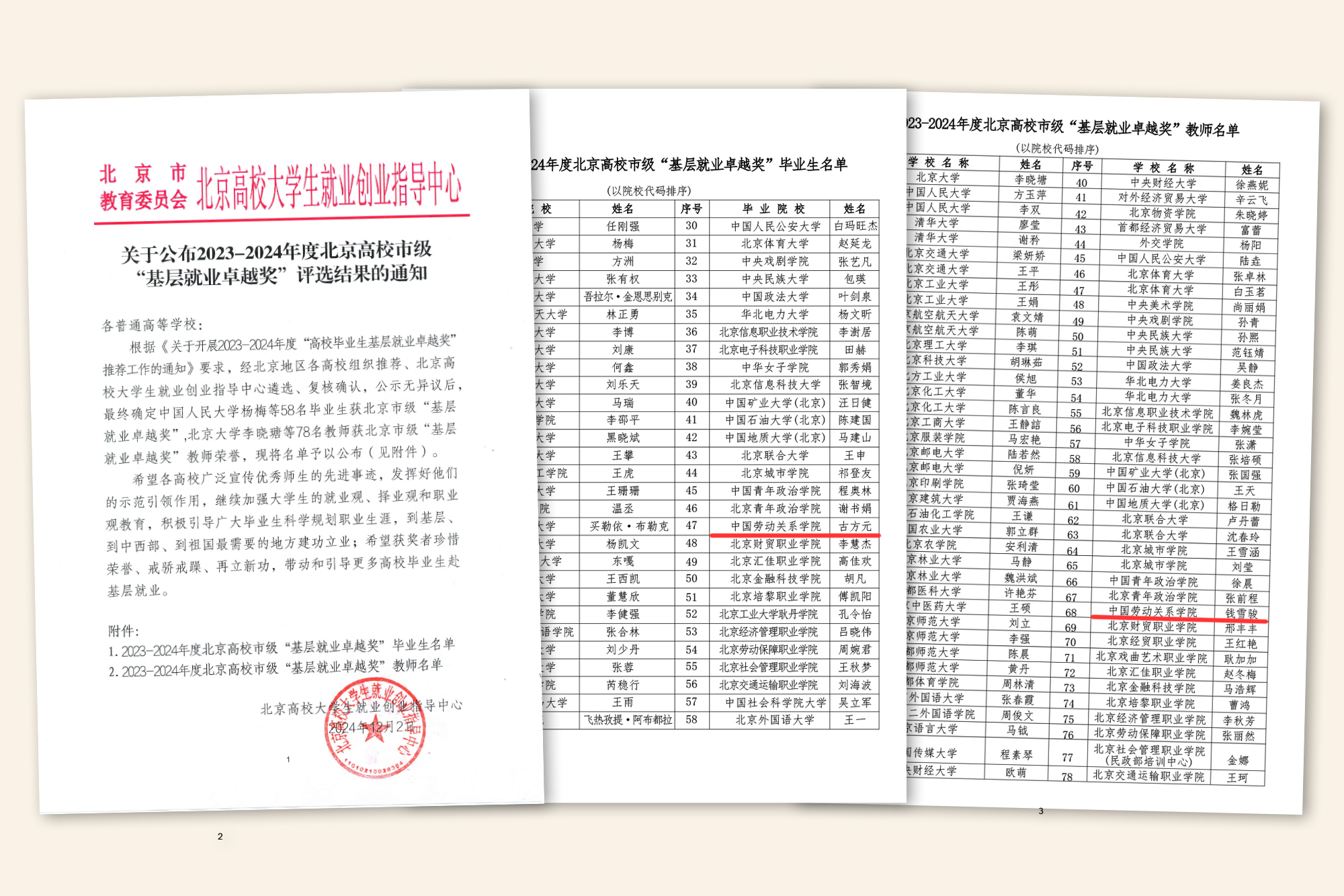 我校师生荣获2023—2024年度北京高校市级“基层就业卓越奖” - 中国劳动关系学院新闻网