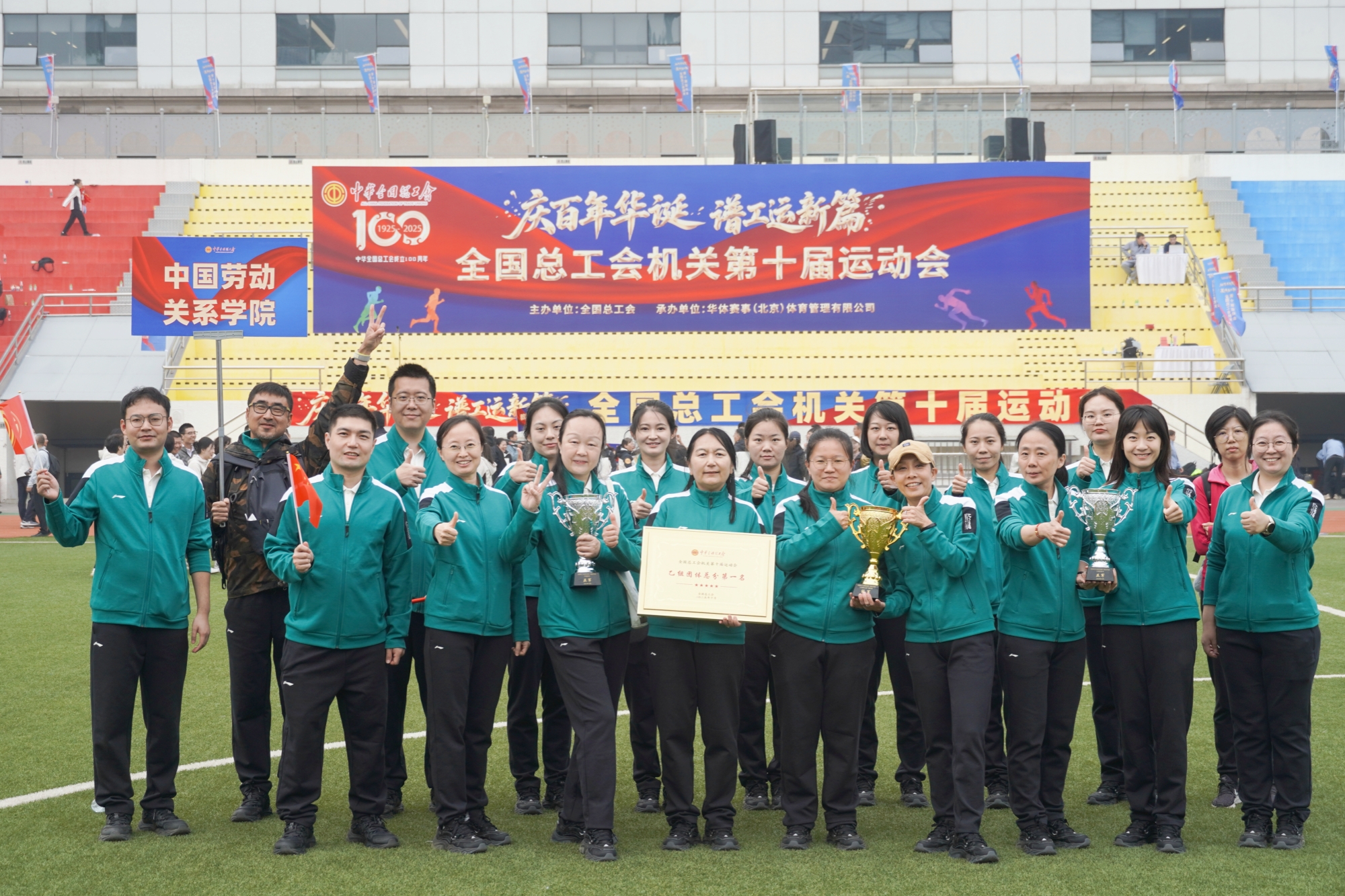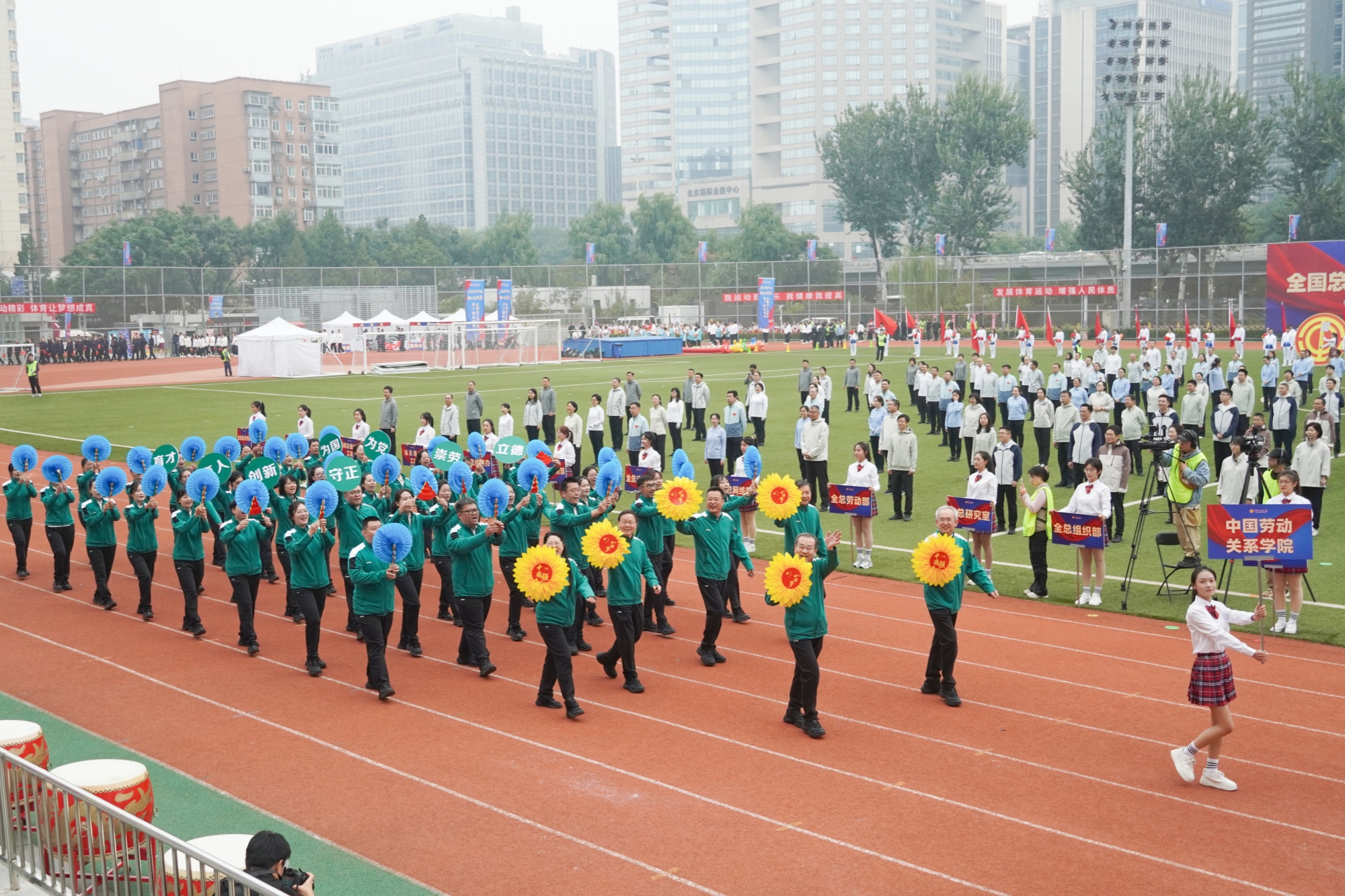 10月15日,全国总工会机关第十届运动会在月坛体育场举行。来自各驻会全国产业工会、全国总工会机关各部门和在京直属单位的39支代表队、1500余名干部职工共同参加运动会。我校教职工代表队荣获乙组团体总分第一名,充分展现了我校教职工的卓越风采与昂扬斗志。