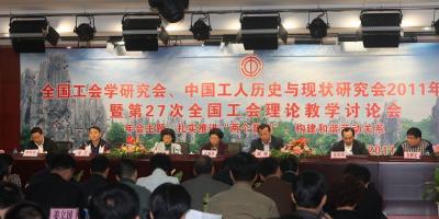 2011年10月15至16日,全国工会学研究会、中国工人历史与现状研究会2011年年会暨第27次全国工会理论教学研讨会在昆明举行。参加此次会议的代表来自中国劳动关系学院、全国总工会工运研究所、工人出版社、全国各省市工会干部学校以及北京建工集团等共计130余人。会议由中国劳动关系学院主办,云南省工青妇干部学校承办,云南省总工会给予大力支持。与会学者围绕“扎实推进‘两个普遍’,构建和谐劳动关系”的主题进行了研讨。本次研讨会是近年来工会和劳动关系研究成果的集中展示,也为进一步做好新时期工会工作和劳动关系研究提供了理论借鉴。