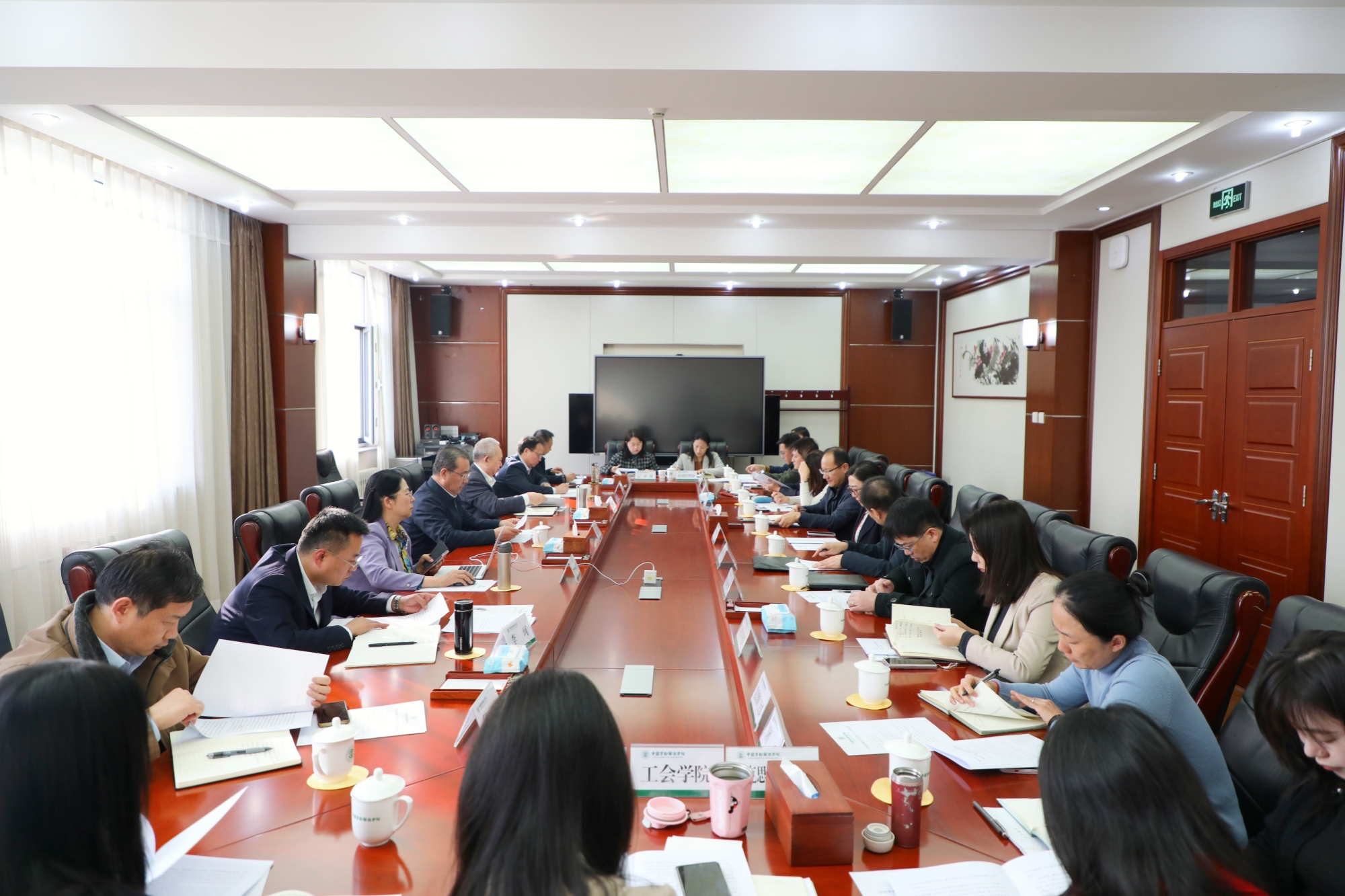 党委常委、副校长刘丽红传达全总党组会议精神。会上,党委常委逐一发言,交流学习体会。大家一致认为,党的二十届四中全会是在我国即将胜利完成“十四五”主要目标任务,进入基本实现社会主义现代化夯实基础、全面发力的关键时期召开的一次重要会议。要把深入学习宣传贯彻党的二十届四中全会精神与学习贯彻习近平总书记关于工人阶级和工会工作的重要论述、关于教育的重要论述以及重要指示批示精神紧密结合起来,做好课程建设、研究阐释、宣传宣讲各项工作。自觉对标对表会议精神做好学校的“十五五”规划编制工作,做好学科建设、专业设置、人才培养等各项工作,推动学校高质量发展再上新台阶。